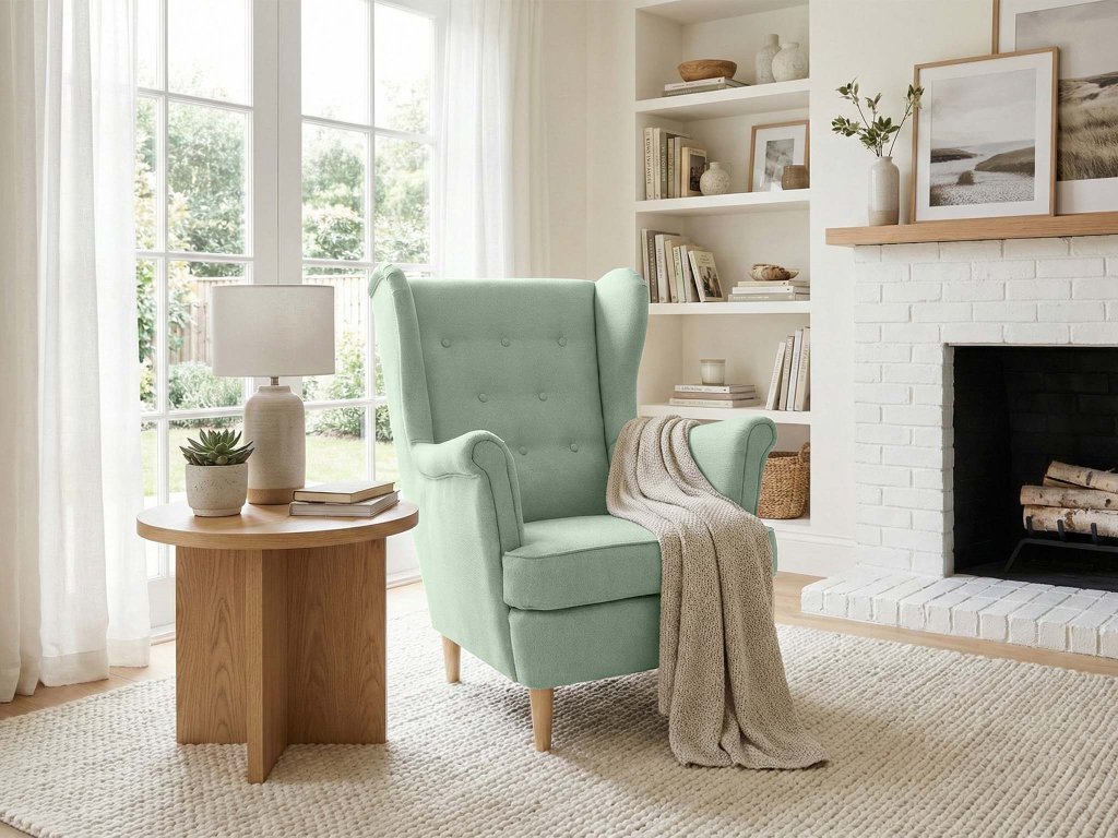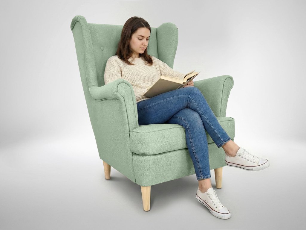 MERIDA füles fotel, amely minden olyan otthonba tökéletes választás, amely retró stílusban van berendezve. Mindazonáltal a modern és a klasszikus otthonokban is megállja a helyét. A kollekció gyönyörű pasztell színekben készült. A magas háttámla steppelt és gombokkal díszített. A formájának köszönhetően kényelmes ülést garantál tévénézés vagy olvasás közben. A fotel minőségi szövettel van kárpitozva, amely remekül ellenáll az elhasználódásnak. A profilozott háttámlára és kartámlára T25, az ülésre T30 keménységű habot használtak fel. A fotel natúr fából készült lábakon áll. A fotel tisztítását nagyban segíti, hogy az ülőfelület kivehető.