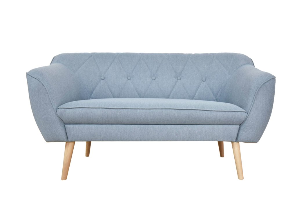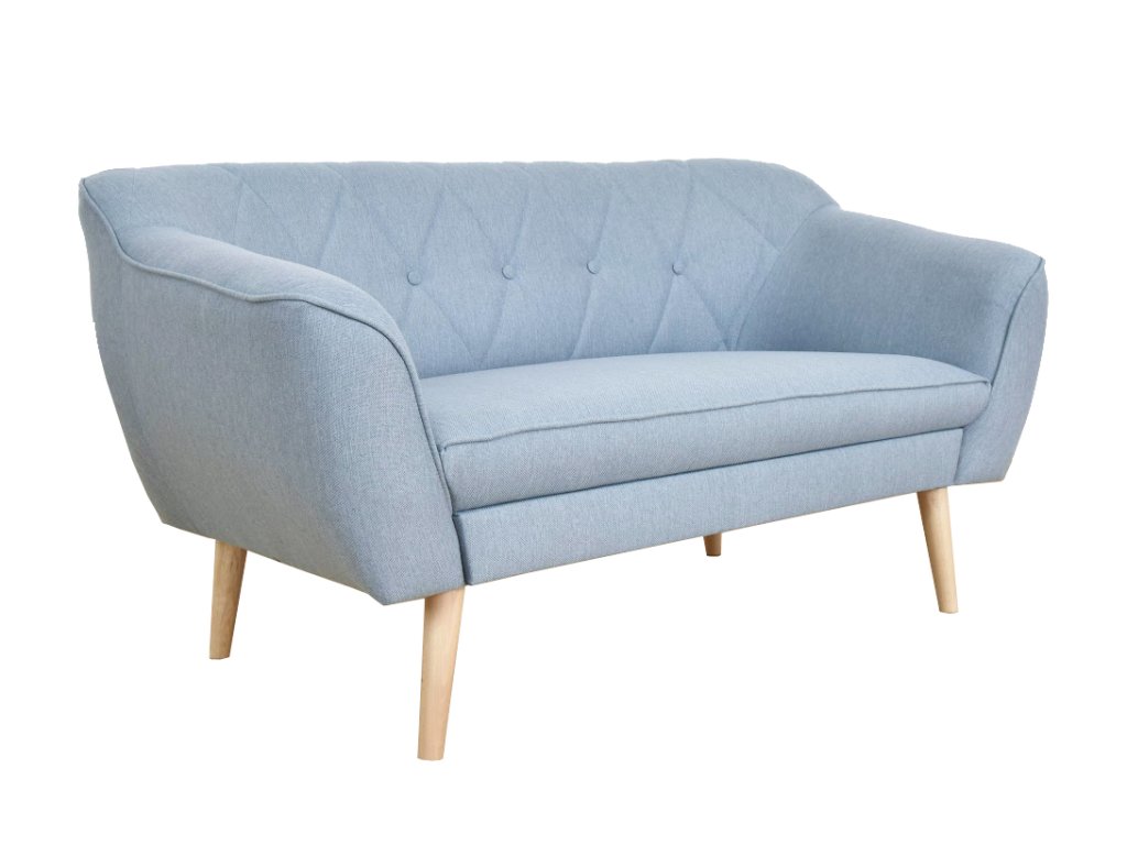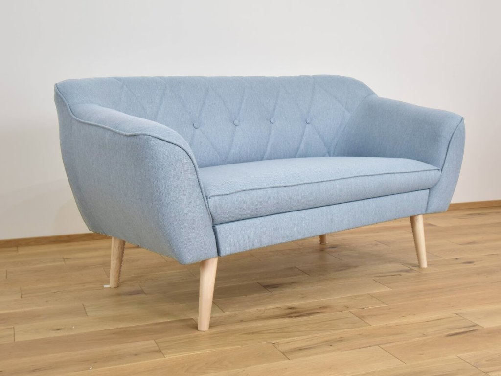 A MERIDA II kanapé skandináv stílusban készült gyönyörű pasztell színekben. A kétszemélyes kanapé minden nappaliban fantasztikusan mutat. A háttámla steppelt és gombokkal díszített. A formájának köszönhetően kényelmes ülést garantál tévénézés vagy olvasás közben. A kanapé minőségi szövettel van kárpitozva, amely remekül ellenáll az elhasználódásnak és a bolyhozódásnak. A profilozott háttámlára és kartámlára T25, az ülésre T30 keménységű habot használtak fel. A kanapé natúr fából készült lábakon áll.