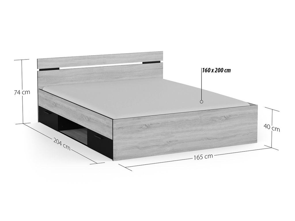 MICHIGAN franciaágy 160x200 - tölgy/fekete