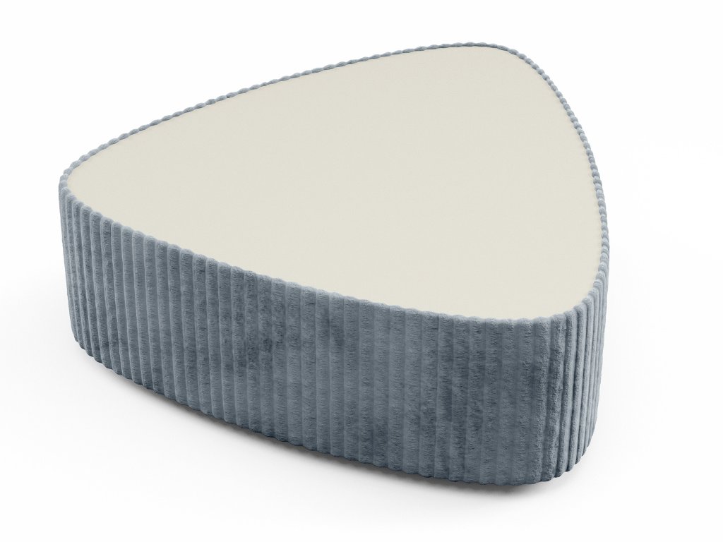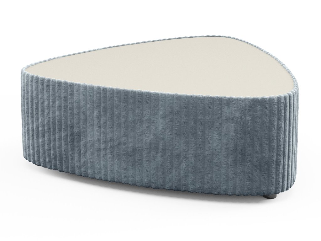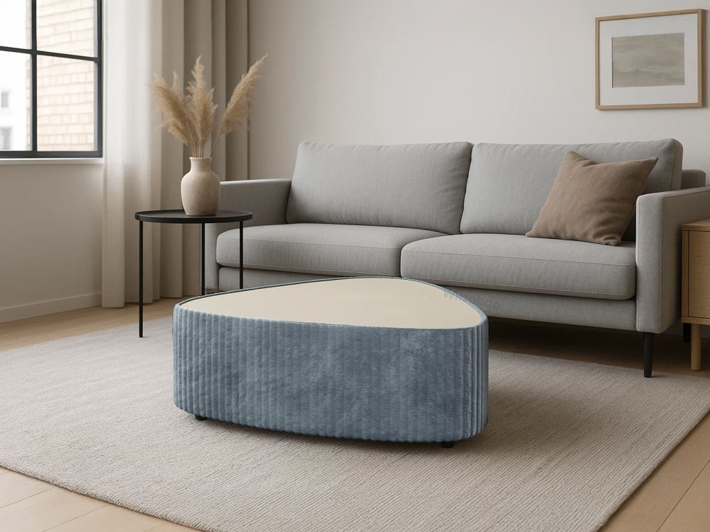 Gyönyörű kék kordbársony szövettel kárpitozott háromszög alakú MIO dohányzóasztal, amely lenyűgözi majd a kinézetével és funkcionalitásával. Az asztallap kiváló minőségű laminált faforgácslapból készült, ami természetes és időtálló megjelenést kölcsönöz a bútornak. Ez a dohányzóasztal nemcsak gyönyörű, de praktikus is. Fekete műanyag lábai biztosítják a stabilitását és a bútor modern jellegét.