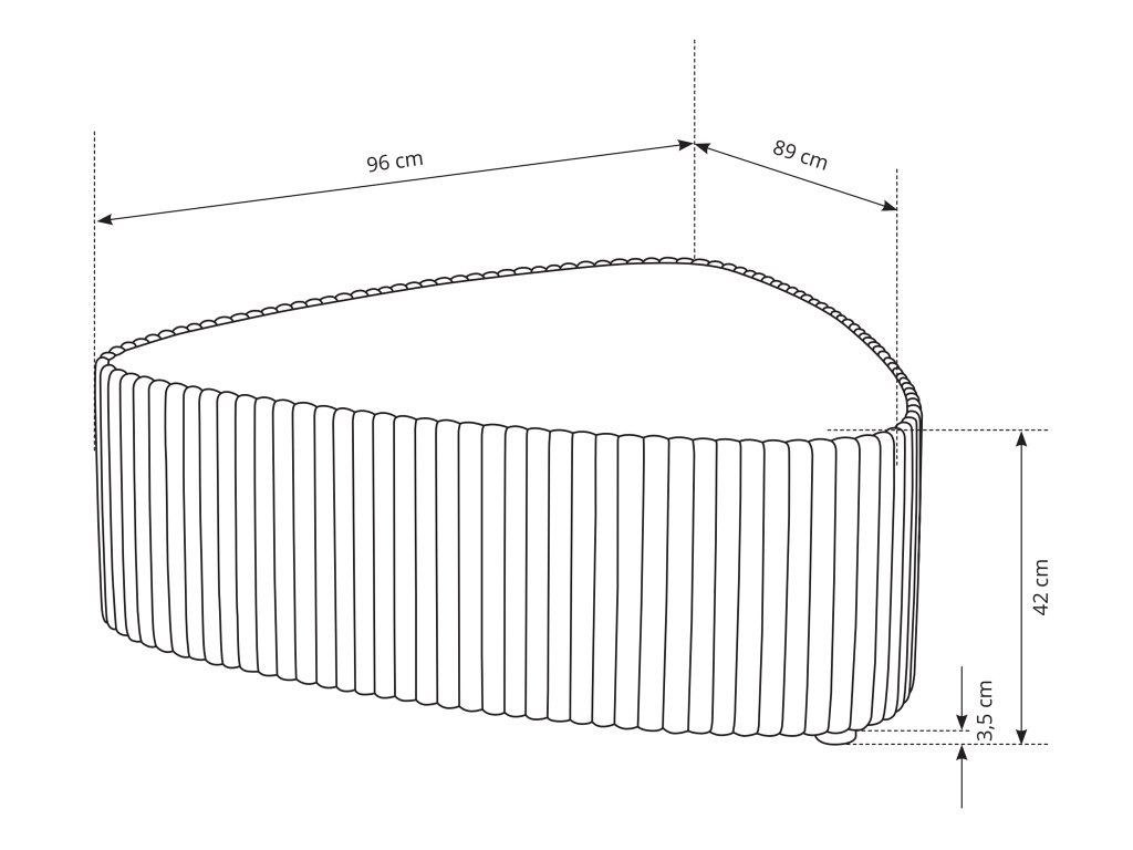 Az asztal szélei szép kordbársony manchester szövettel kárpitozottak. Ez az anyag igazán ellenálló a kikopással szemben, így hosszú élettartamot garantál. Az egyszerű, de modern megjelenésének köszönhetően tökéletes minden nappaliba vagy dolgozószobába. A dohányzóasztal olyan anyagokból készült, amelyek ellenállóak a karcolásokkal, a nedvességgel és a magas hőmérséklettel szemben, így a legigényesebb vásárlóknak is megfelel. Egyedi formájának és kinézetének hála a szoba dísze lesz.