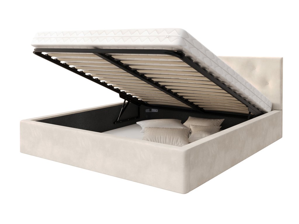 MIRAN egyszemélyes kárpitozott ágyneműtartós ágy 120x200 - krémszínű