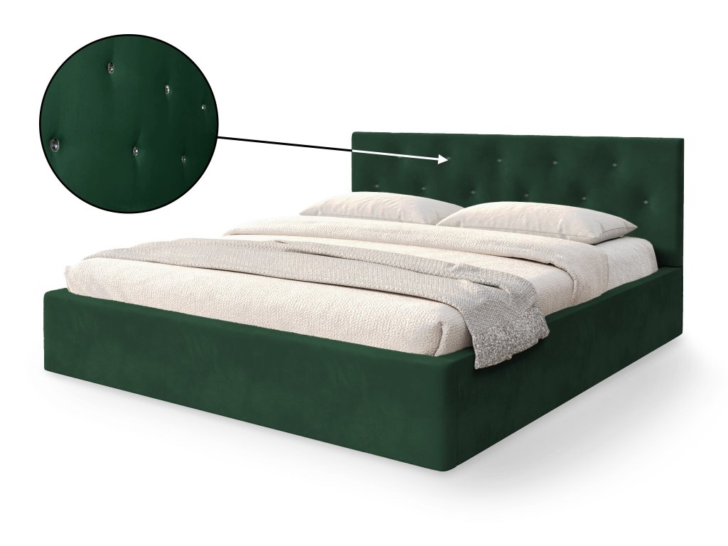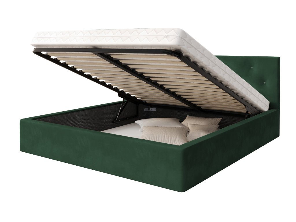 MIRAN egyszemélyes kárpitozott ágyneműtartós ágy 120x200 - zöld