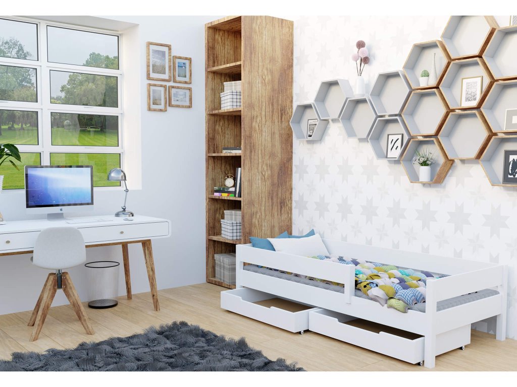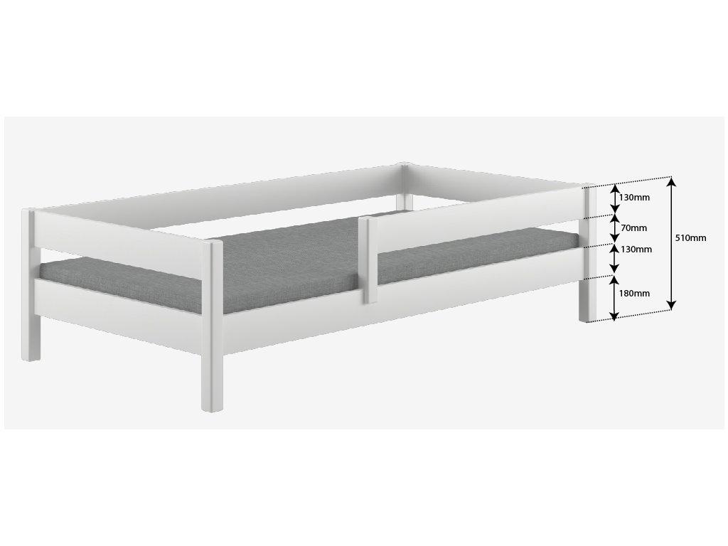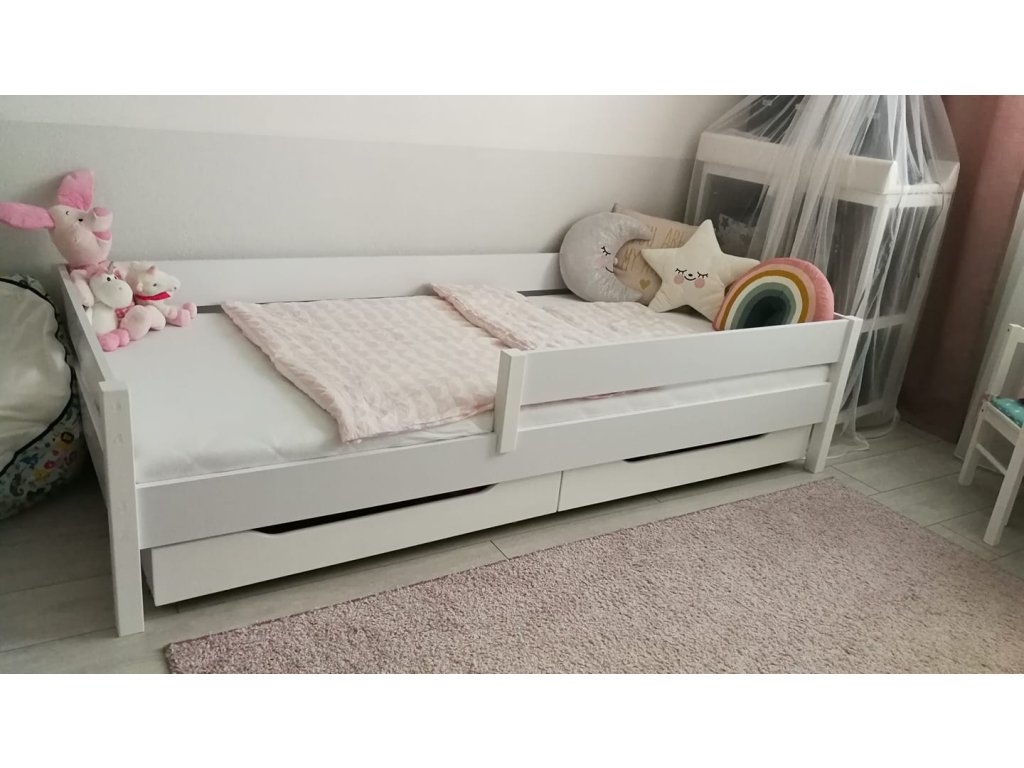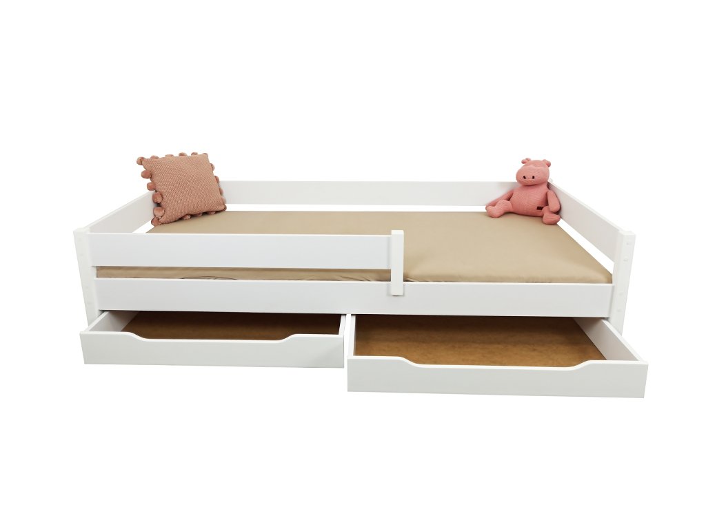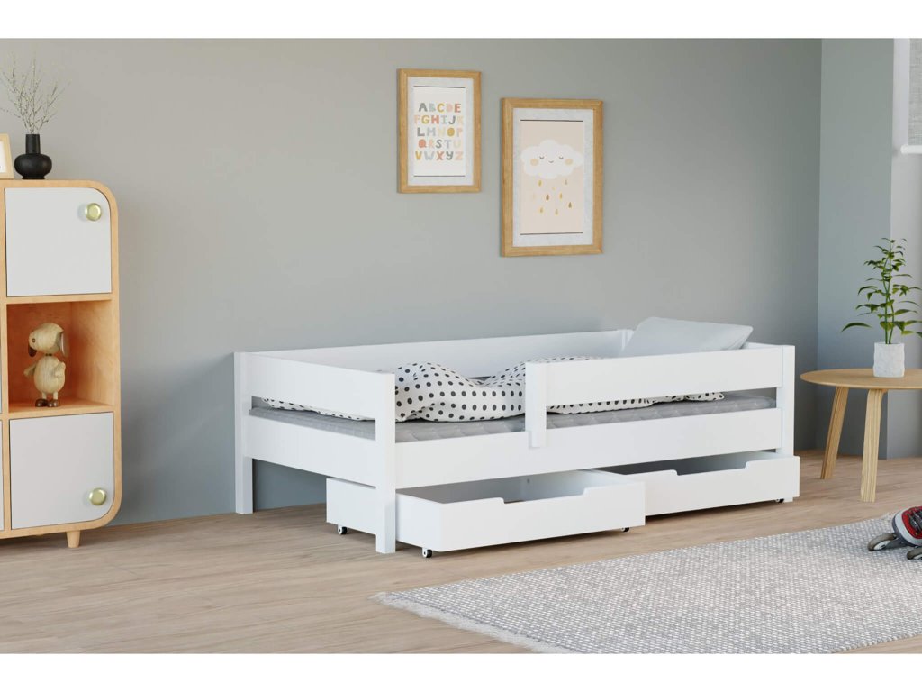MIX fehér gyerekágy több méretben: 140x70 cm, 160x80 cm, 180x80 cm, 180x90 cm, 200x90 cm leesésgátlóval