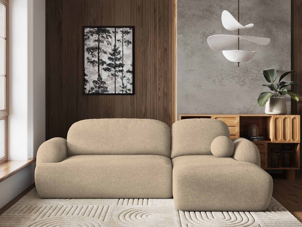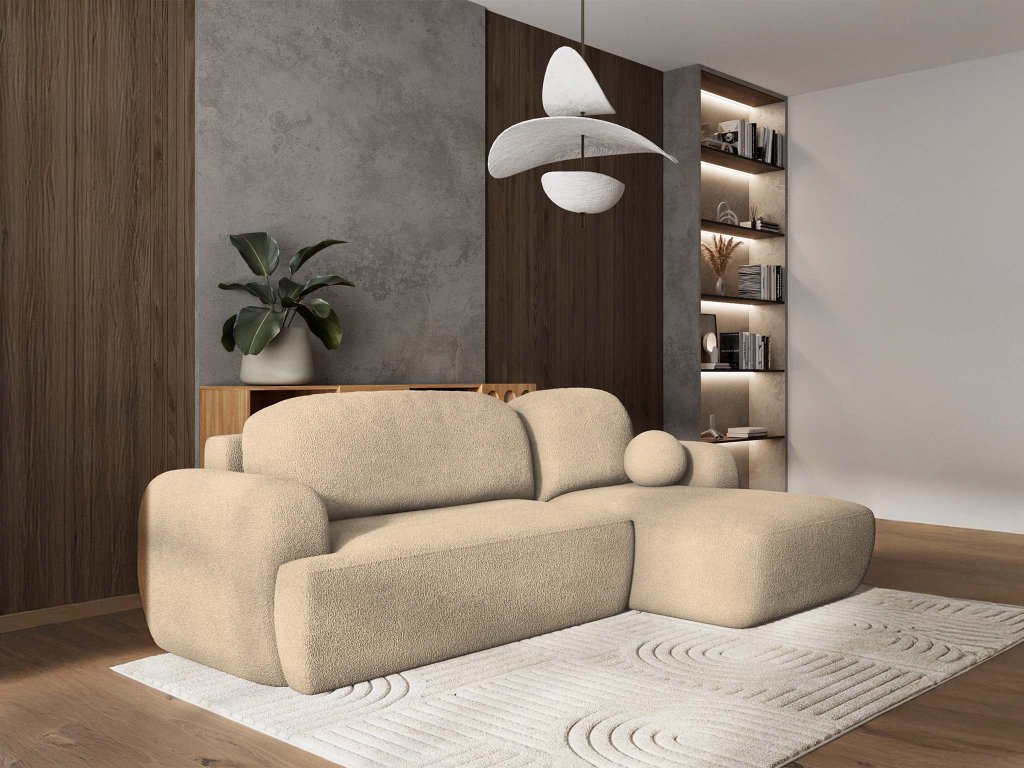Garantálja a tökéletes kényelmét és vásárolja meg a nappaliba az L alakú MODENZA sarok ülőgarnitúrát. Ez a minőségi és kidolgozott sarokkanapé krémszínű Now or Never szövettel kárpitozott, amely egy kicsit a bouclé-ra (báránykás) emlékeztet a struktúráját tekintve. A felszíne nagyon puha, kellemes tapintású, de ennek ellenére nagyon ellenálló és könnyen karbantartható. A stabil szerkezetéről a minőségi forgácslap és a rétegelt falemez gondoskodik, míg a kényelmességéért a hullámrugók és PUR hab felelnek.
