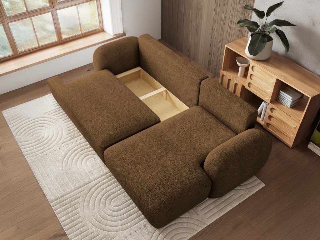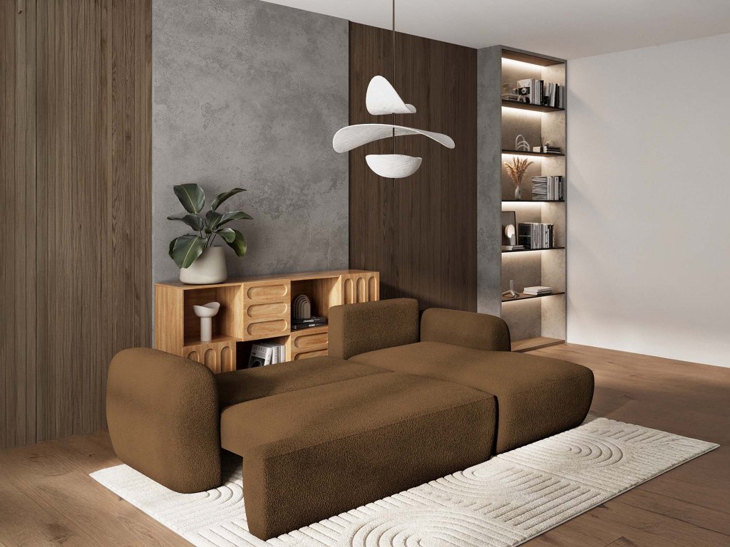 Amennyiben éppen a nappali felújításán fáradozik és keresi a tökéletes sarokkanapét, akkor válassza a barna színű L alakú MODENZA sarok ülőgarnitúrát. Ez a minőségi és kidolgozott sarokkanapé barna Now or Never szövettel kárpitozott, amely egy kicsit a bouclé-ra (báránykás) emlékeztet a struktúráját tekintve. A felszíne nagyon puha, kellemes tapintású, de ennek ellenére nagyon ellenálló és könnyen karbantartható. A stabil szerkezetéről a minőségi forgácslap és a rétegelt falemez gondoskodik, míg a kényelmességéért a hullámrugók és PUR hab felelnek.