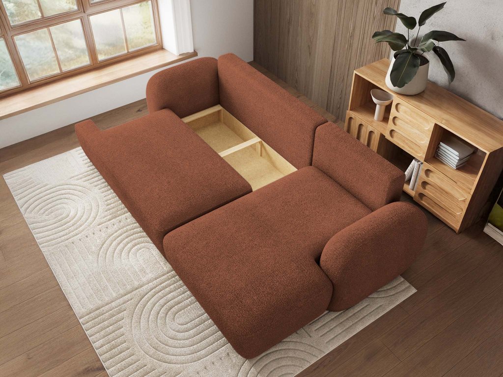 Vigyen új színt a nappalijába a gyönyörű téglavörös színű MODENZA L alakú sarok ülőgarnitúra segítségével. Ez a minőségi és kidolgozott sarokkanapé téglavörös Now or Never szövettel kárpitozott, amely egy kicsit a bouclé-ra (báránykás) emlékeztet a struktúráját tekintve. A felszíne nagyon puha, kellemes tapintású, de ennek ellenére nagyon ellenálló és könnyen karbantartható. A stabil szerkezetéről a minőségi forgácslap és a rétegelt falemez gondoskodik, míg a kényelmességéért a hullámrugók és PUR hab felelnek.