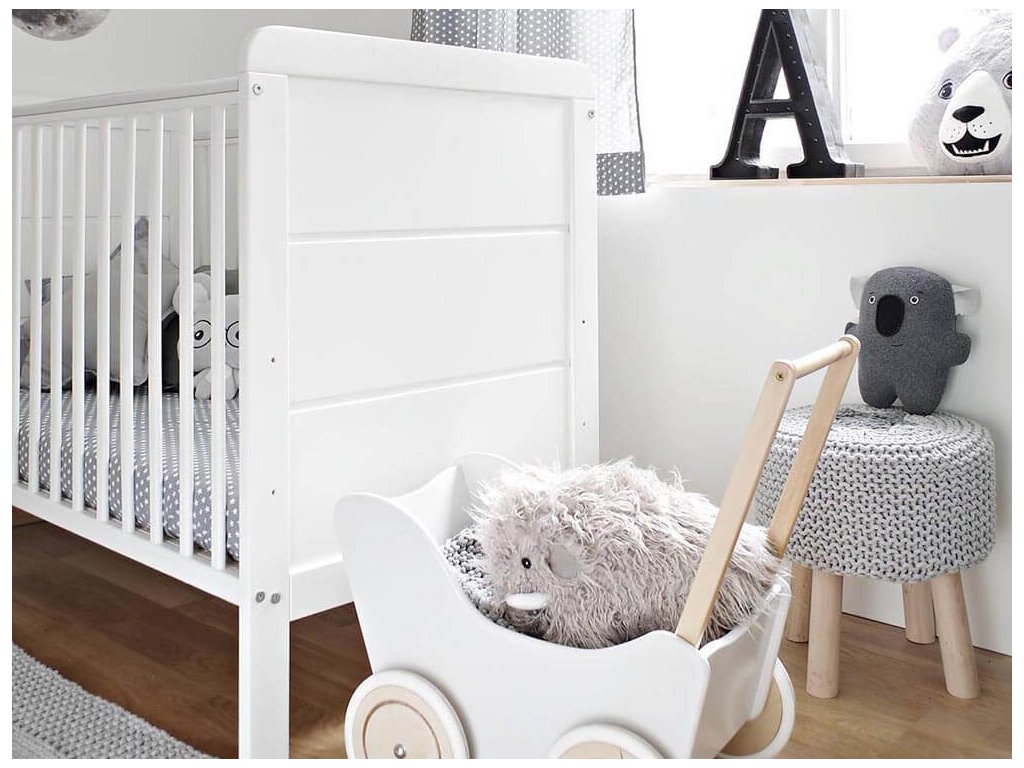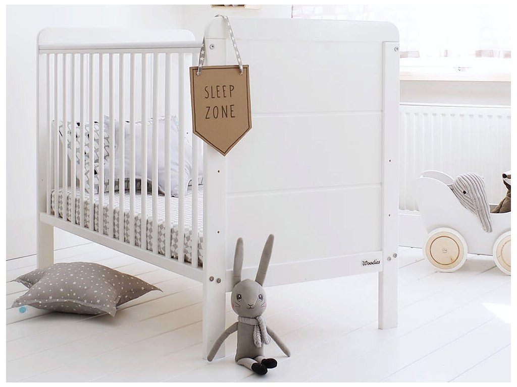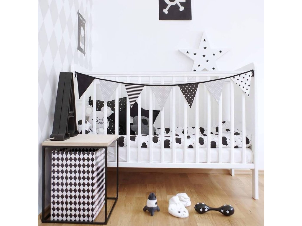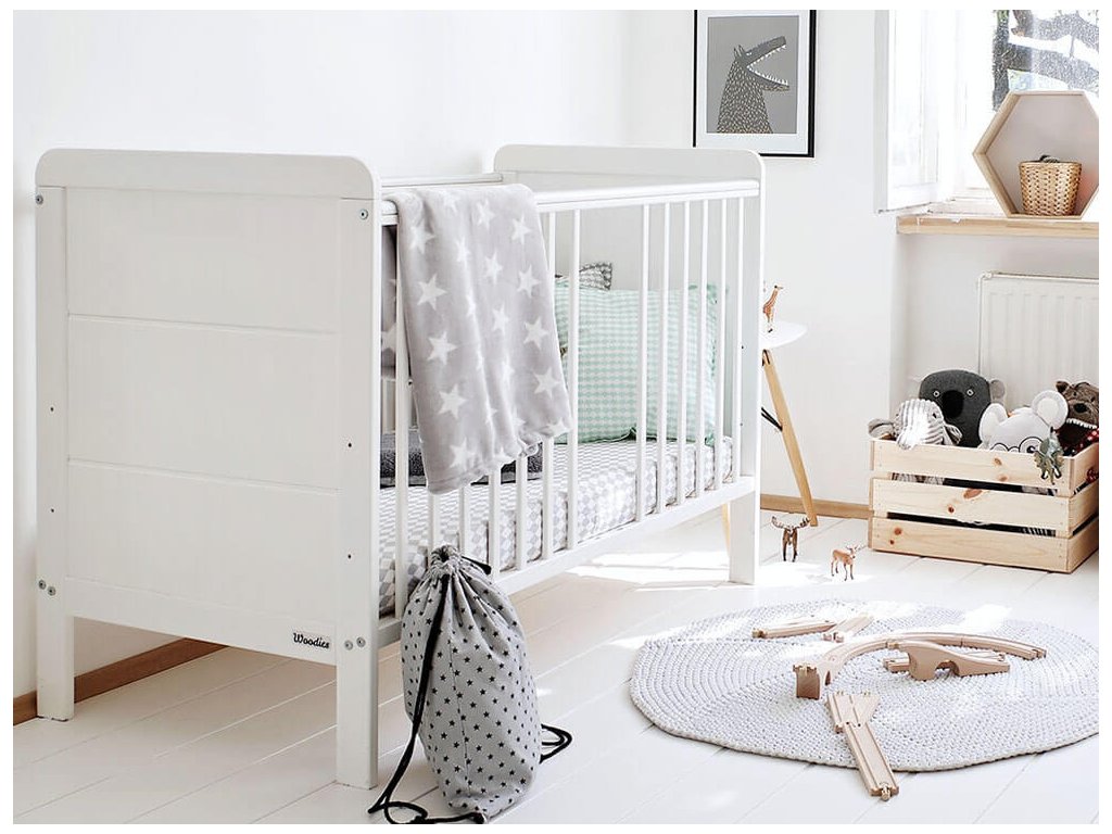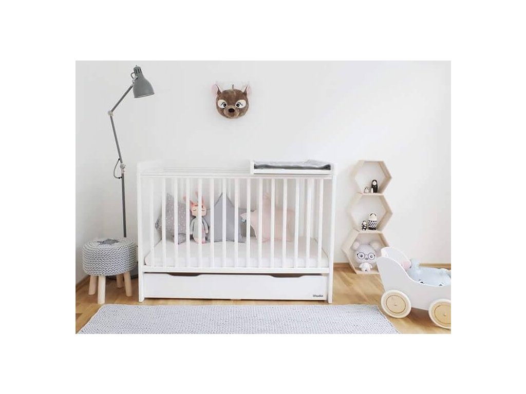 A MODERN Cot kiságy 60x120 cm minőségi tömör boroviból és MDF-ből készül. A babaágy két réteg minőségi tanúsítvánnyal rendelkező fehér félig matt festékkel van bevonvaa háttámláin pedig vízszintes csíkok találhatók. A kiságy fekhelyének magassága három fokozatban állítható, három kivehető ráccsal rendelkezik. A felső oldalsó lécek "rágókákkal" védettek, melyek megóvják gyermekét attól, hogy esetleg lerágja a festéket. Az összeszerelése rendkívül egyszerű.