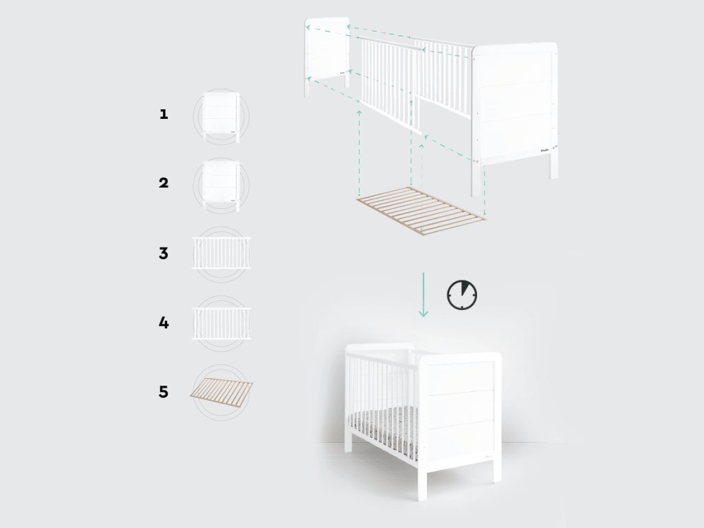 A matrac és a Day Bed leesésgátló NEM része a kiságynak! A Day Bed leesésgátló meghosszabbítja a kiságy használati idejét.