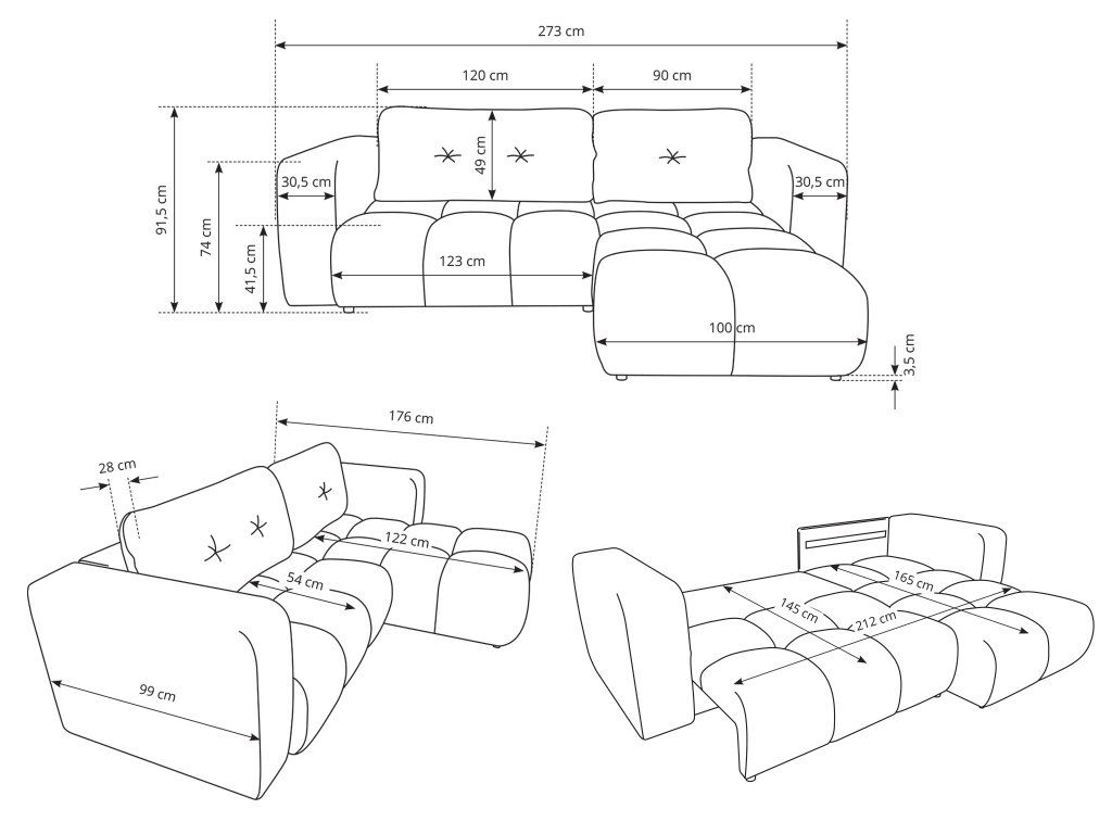 - 212 × 145 cm méretű fekhely: kényelmes megoldás alkalmi alváshoz vagy vendégek érkezésekor.