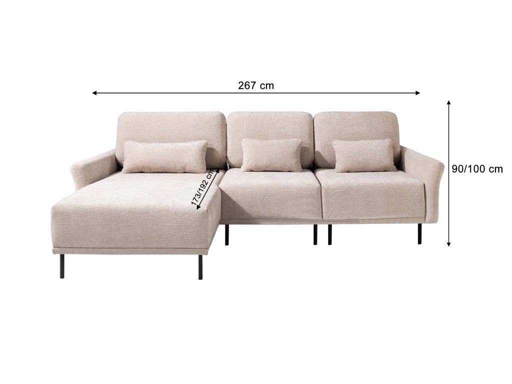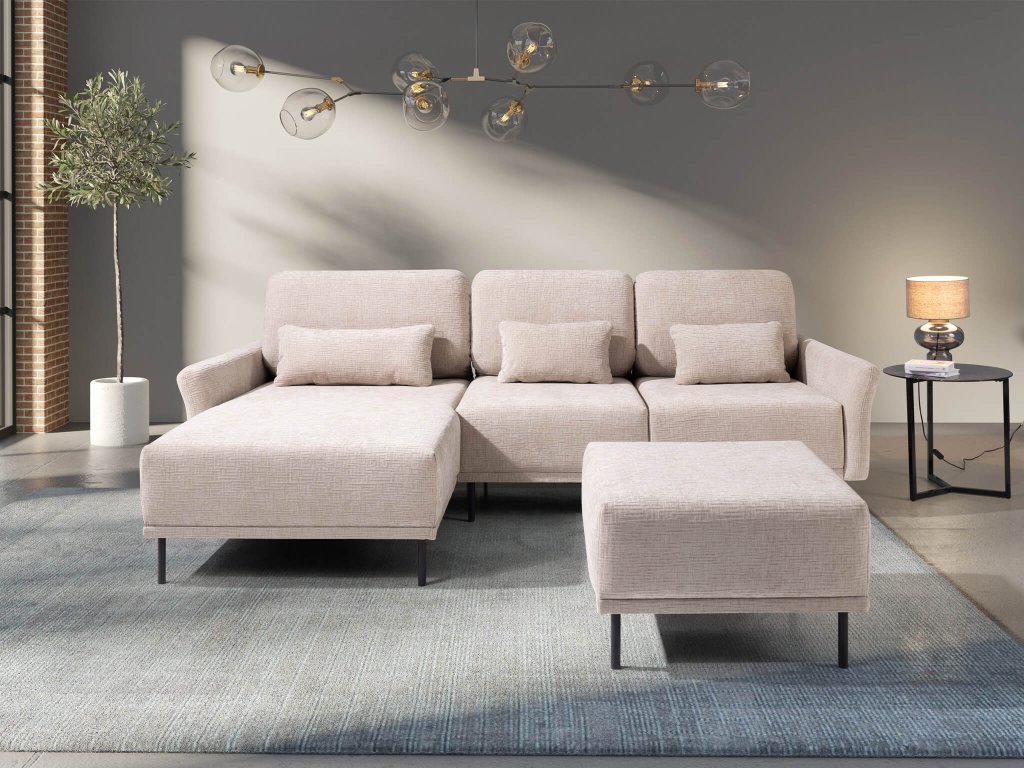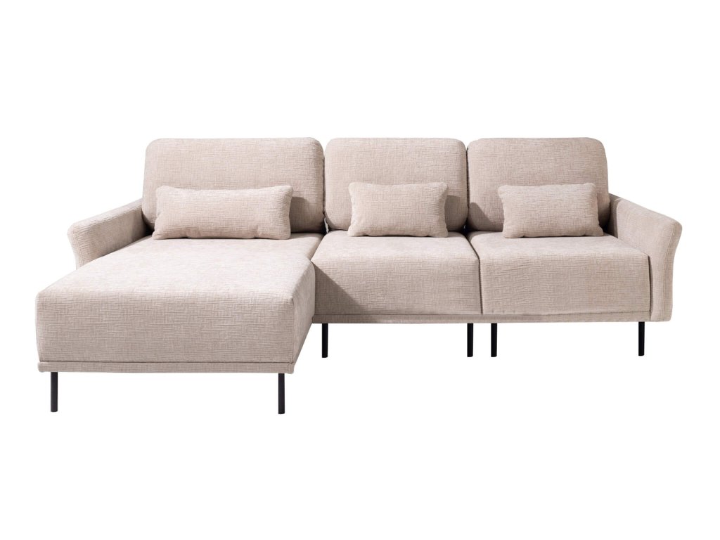 A stílusos MODULO moduláris kanapé állítható háttámlával és három puha párnával rendelkező sarokkanapé. Az ülőgarnitúra érdekes textúrájú bézs színű szövettel van kárpitozva. Strapabíró, ezért hosszú ideig fogja az Ön és családja kényelmét biztosítani. Ízlésesen berendezhető vele a nappali a hozzá illő bútorszettel együtt. A MODULO sarokülő komfortosságát az állítható háttámlák és az ellenálló hideghab töltet garantálja.