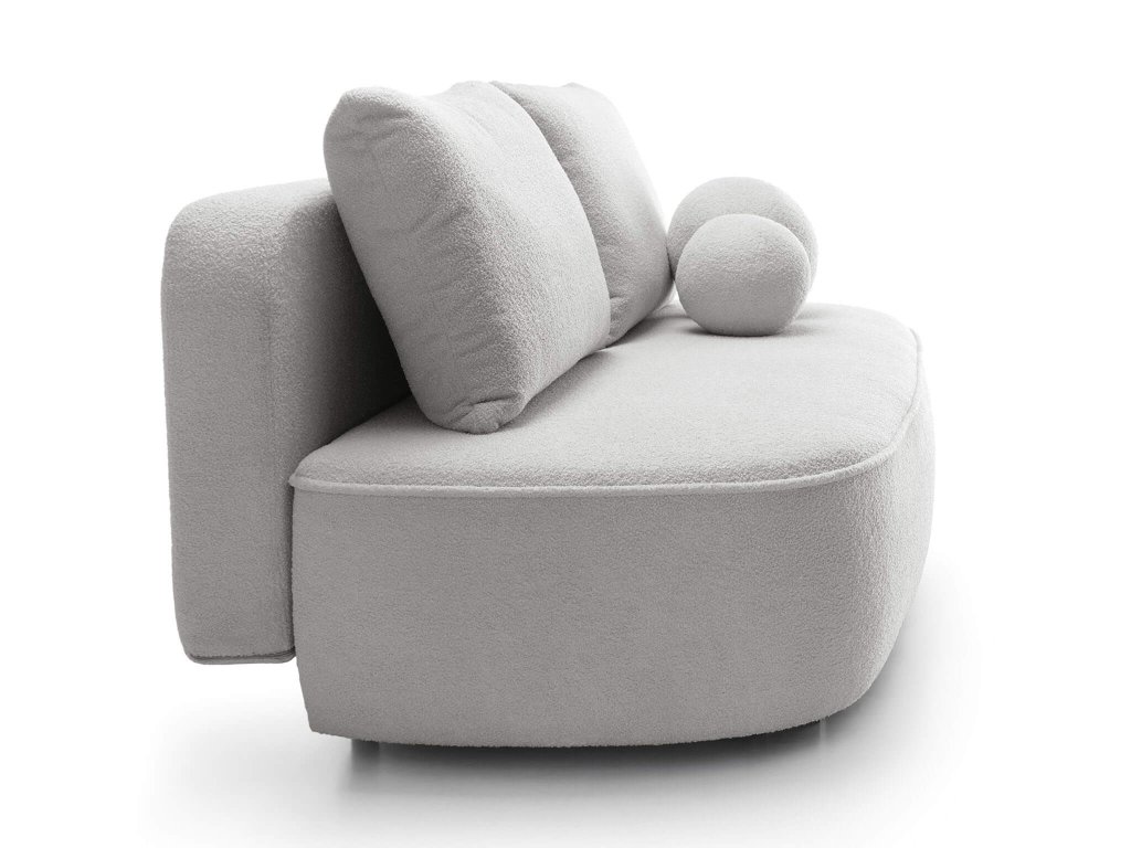 A Molly kanapé levehető párnákkal együtt kapható, melynek köszönhetően könnyen karban tartható. Az egyik legnagyobb előnye, hogy a kanapé könnyedén szétnyitható és egy kényelmes kétszemélyes ággyá alakítható. Ennek biztosan hasznát veszi majd, ha egy váratlan vendég toppan be, aki éjszakára is marad, esetleg ha szeret kényelmesen fekve tévézni. A kihúzható kanapé részét képezi két nem mindennapi formatervezéssel rendelkező gömb alakú párna, amelyek ugyanolyan anyaggal vannak bevonva, és ugyanolyan színűek, mint a kanapé. Ezek a párnák nemcsak a kényelméhez járulnak hozzá, hanem a kanapé eleganciáját is növelik. Válassza a Molly kanapéágyat, amely a stílus, a kényelem és a praktikum tökéletes kombinációját alkotja.