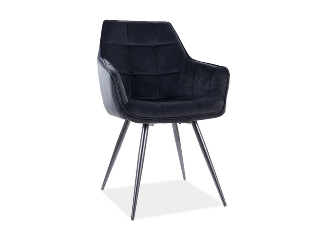 A MOLLY gyönyörű fekete kárpitozott étkezőszék remek választás minden otthonba. Kényelem, elegancia, stílusosság, ezt mind megkapja az étkezőszéknek köszönhetően. A szék bársonyos anyaggal kárpitozott, amely nagyon kellemes tapintású. Ezt kiegészítik a stílusos fém lábak, amelyek fekete matt festékkel vannak kezelve. A szék praktikus karfákkal is rendelkezik, így kényelmesen el tud rajta helyezkedni a családi étkezések vagy a barátokkal eltöltött esték során. Az étkezőszék gyönyörű steppeléssel rendelkezik a háttámlán és az ülőkén is.Az említett modern kivitelének köszönhetően a széket nem csak az étkezőben használhatja, de tökéletes választás a nappaliba vagy a hálószobába a sminkasztalhoz is.