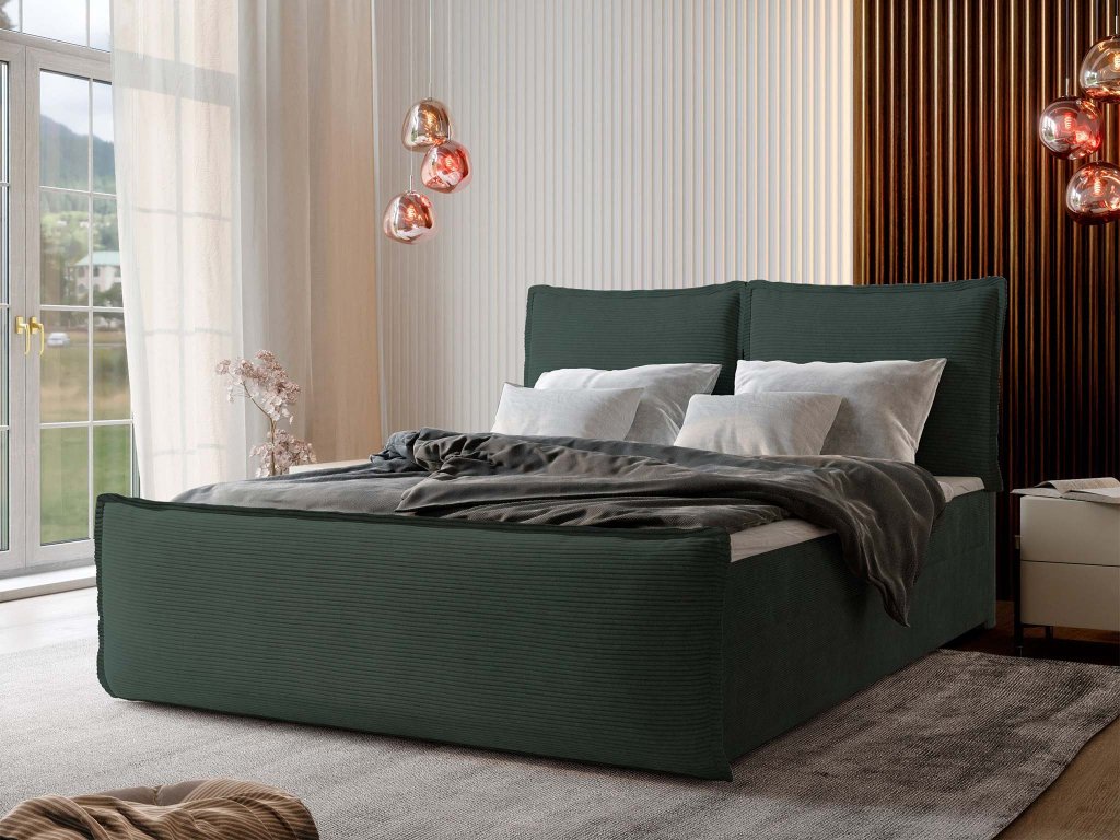 MONTA ágyneműtartós kárpitozott boxspring ágy 140x200 - zöld