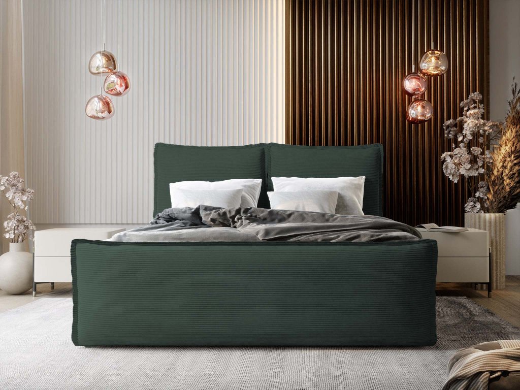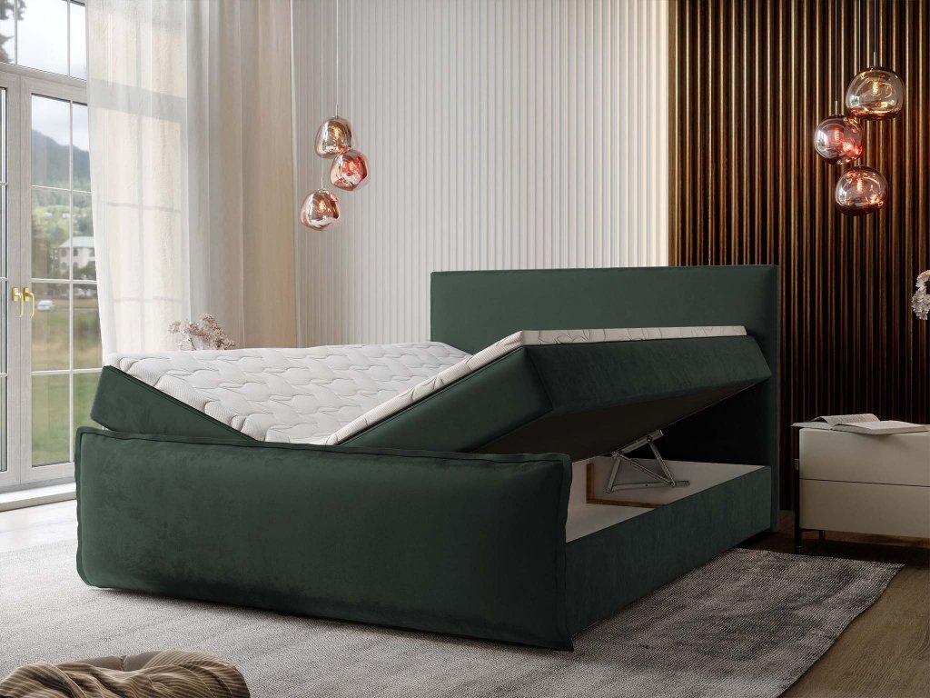 MONTA ágyneműtartós kárpitozott boxspring ágy 160x200 - zöld