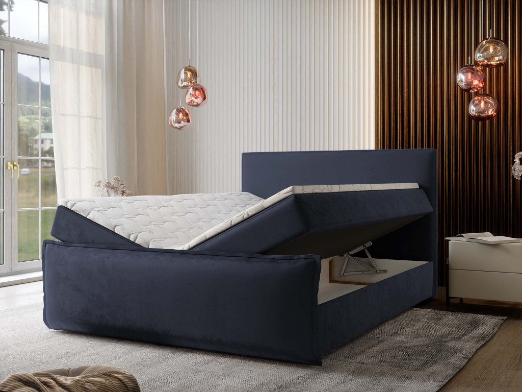 MONTA ágyneműtartós kárpitozott boxspring ágy 180x200 - királykék