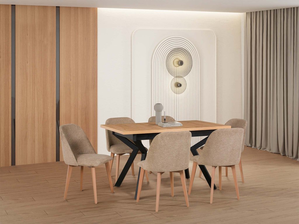 A Monti 3 étkezőszék a stílus és funkcionalitás tökéletes kombinációját képviseli, ami nemcsak étkezőbe, hanem irodai székként is ideálissá teszi. Dizájnja ötvözi az elegáns bükk kivitelt a bézs kárpitozással, modern és kifinomult megjelenést teremtve, amely harmonizál különböző enteriőrökkel. A praktikum és esztétikum ezen összekapcsolásával a szék bármilyen térbe illik.