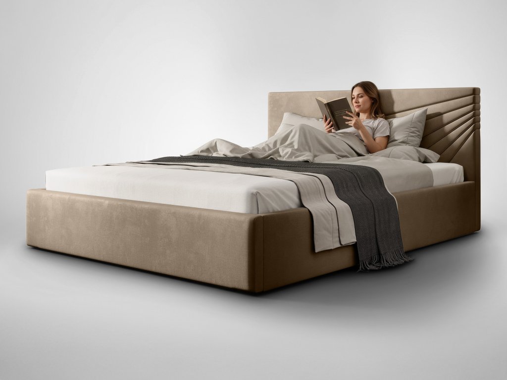 Ennek az ágynak az egyik fő előnye a felnyitható fém ágyrács, amely gázrugókkal van felszerelve, lehetővé téve a kényelmes és sima emelést. Az ágyrács alatt tágas HDF lemezből készült tárolóhely található, amely alkalmas ágynemű vagy olyan dolgok tárolására, amelyeket mindig kéznél szeretne tartani. A laminált lemezből készült keret biztosítja az egész szerkezet stabilitását és tartósságát, miközben kialakítása támogatja a levegő áramlását a matrac alatt. Ez segít fenntartani a száraz és higiénikus környezetet alvás közben. A keret felületén hab és vatta réteg található, amelyek puhaságot és kellemes érintést kölcsönöznek az ágynak. A hagyományos lábak helyett fix csúszkák vannak használva, amelyek növelik a szilárdságot és megkönnyítik az ágy alatti tisztítást.