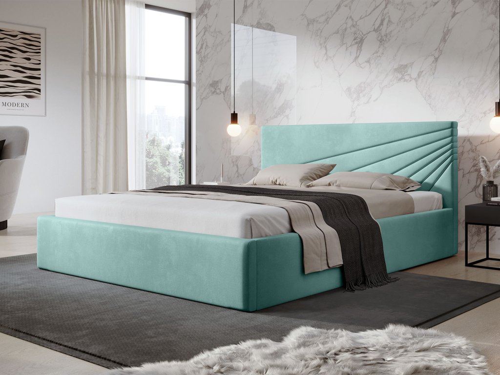 MORENZO SLIM kárpitozott franciaágy ágyneműtartóval 160x200 - mentazold