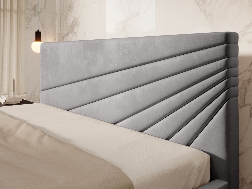Kárpitozott franciaágy Morenzo Slim nagyszerű választás azoknak, akik modern dizájnt keresnek magas komforttal és praktikus funkciókkal. 160 × 200 cm méretben elegendő helyet kínál a kényelmes alváshoz. Kiváló minőségű kárpitozás szürke Velluto anyagból – finom velúr textília diszkrét textúrával – elegáns és otthonos megjelenést kölcsönöz a hálószobának.