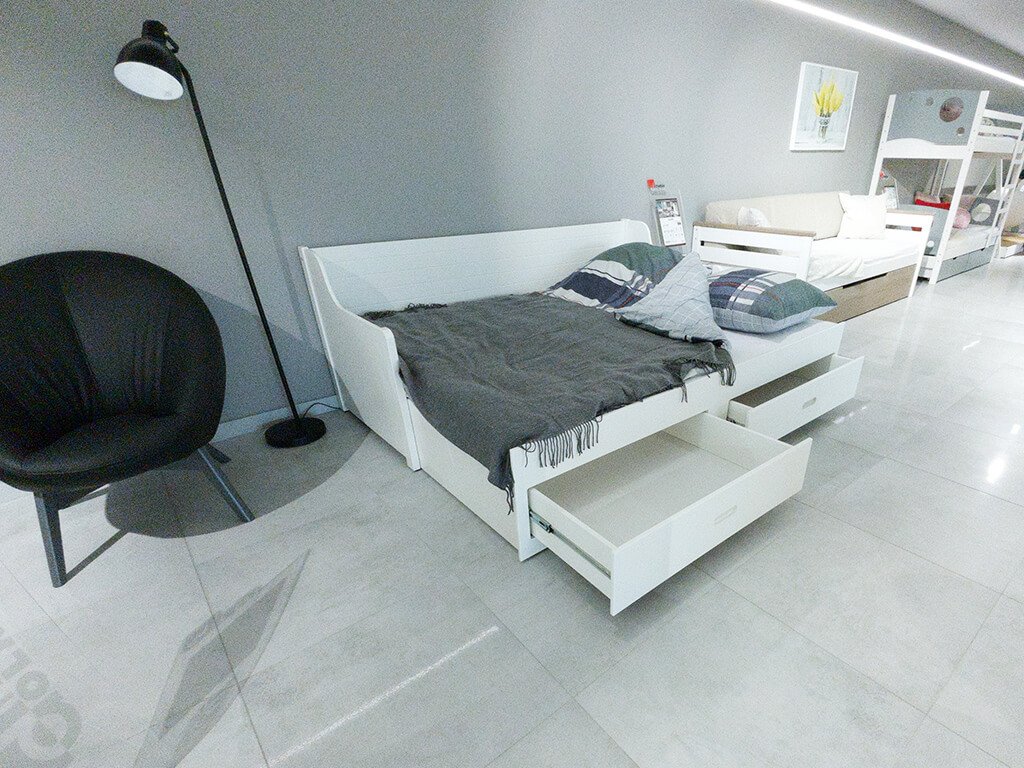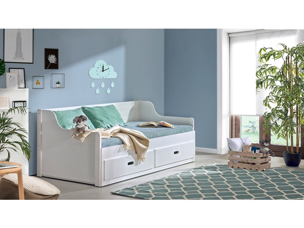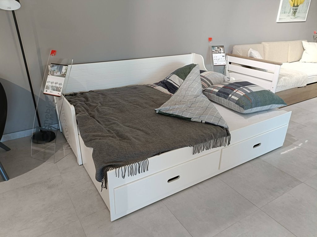 A szép MOSKO 200x80 cm szétnyitható gyerekágy minőségi MDF-ből készült, stabil és biztonságos. Két ágyneműtartó fiókkal együtt kapható, melyek az ágynemű vagy egyéb tárgyak tárolására szolgálnak. A kihúzható ágy rendkívül praktikus, néhány egyszerű lépéssel egy másik teljes értékű fekhelyet hozhat létre. Kiváló diákoknak, testvéreknek vagy vendégeknek.