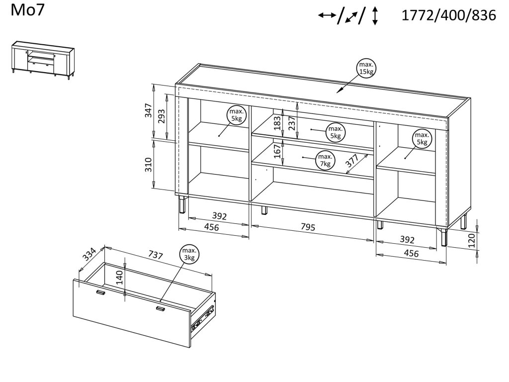 Méret (SzéxMaxMé): 60 x 168,6 x 40 cm - MOSSA 07 széles komód - tökéletes nagy komód számos tároló hellyel