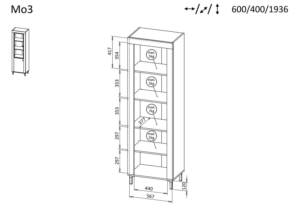 Méret (SzéxMaxMé):177,2 x 83,6 x 40 cm - MOSSA 03 üveges vitrin - elhelyezheti benne a dísztárgyait, porcelánjait vagy a családi fényképeket