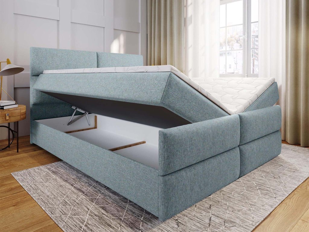 MULEN ágyneműtartós boxspring ágy 140x200 - világoskék