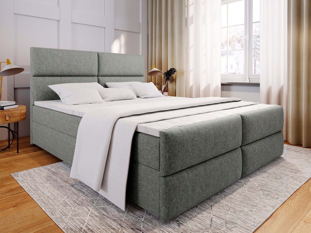 MULEN ágyneműtartós boxspring ágy 180x200 - olívazöld