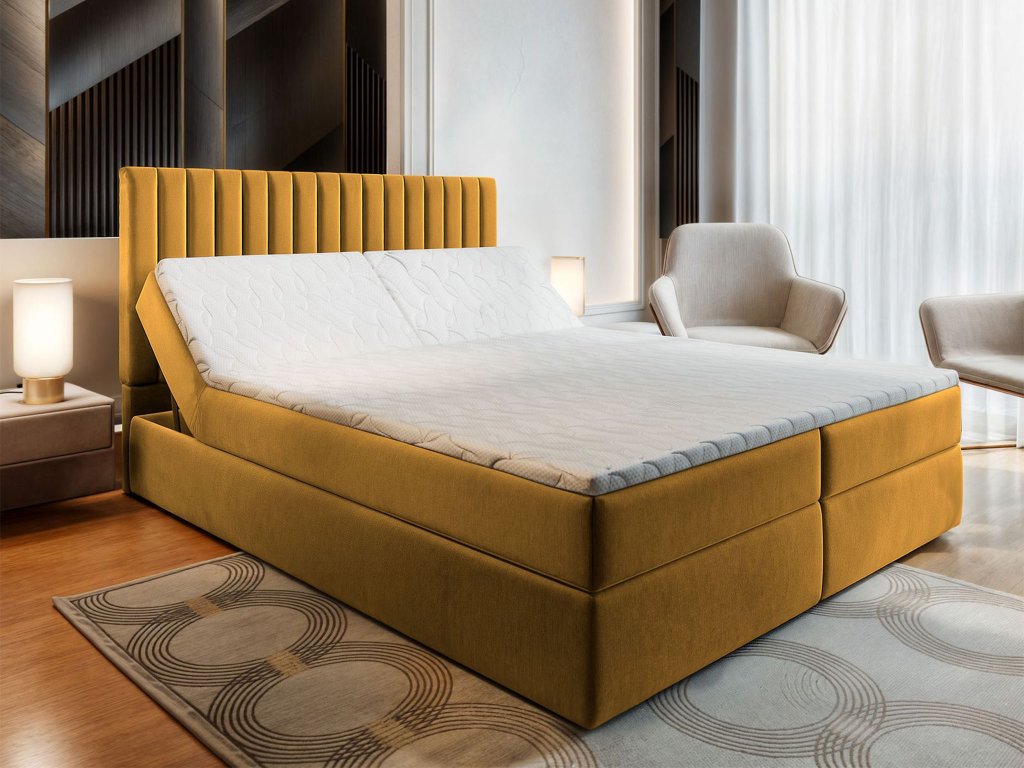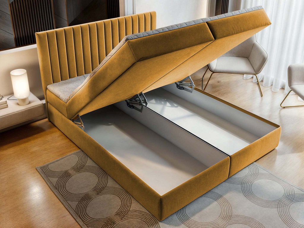 MURLO ágyneműtartós boxspring ágy 140x200 - mustársárga