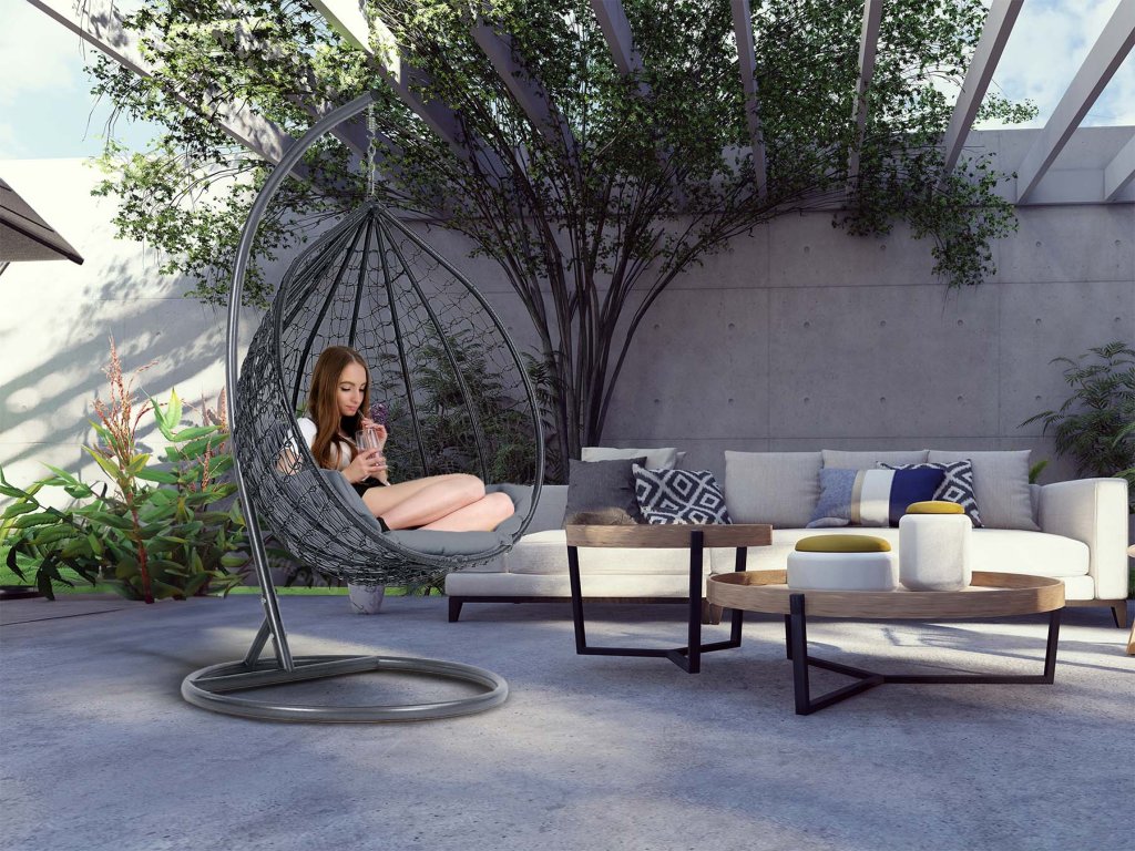 Ha úgy dönt, hogy a Navan függőfotelt válassza, amelyet a szabadban helyez el, azt javasoljuk, hogy a hozzá illő védőhuzatot is vásárolja meg.