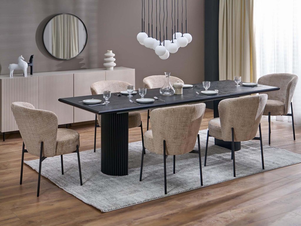 Fekete fém lábak matt felülettel biztosítják a szék modern megjelenését és stabilitását. A bézs szín melegséget és időtlenséget sugároz, amelynek köszönhetően a Navi szék szépen illeszkedik az étkezőbe, nappaliba vagy az dolgozószobába. Kiváló minőségű anyagai garantálják, hogy hosszú évekig megbízhatóan szolgálja Önt.