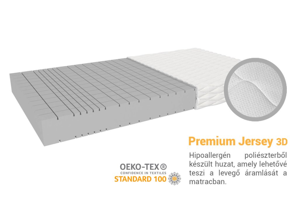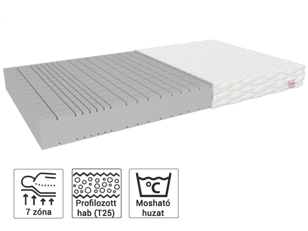 A magas minőségű 7 zónás profilozott hab biztosítja a megfelelő vérkeringést a bőr alatt és az izmok ellazulását alvás során. Hő hatására hozzáidomul a test formájához, így biztosítja a kellemes pihenést. A 7 keménységi zónának köszönhetően megfelelő alátámasztást nyújt a hátgerincnek és az egész testnek. Ez a hab allergiások számára is megfelelő.