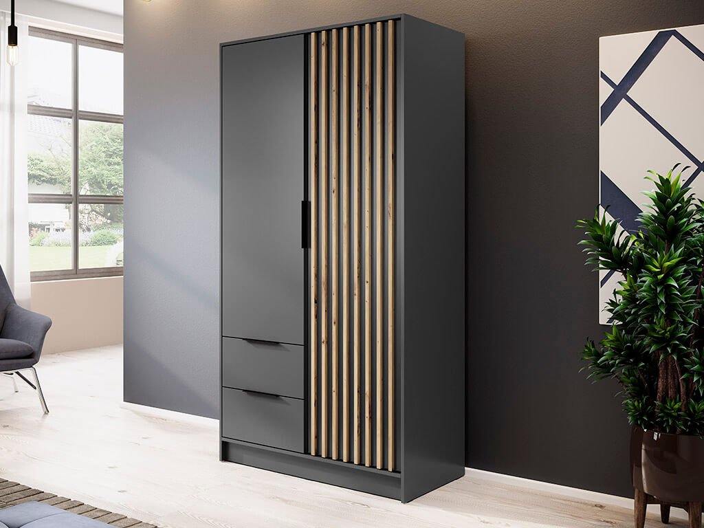 NELLY 2D ruhásszekrény - sötétszürke / artisan tölgy