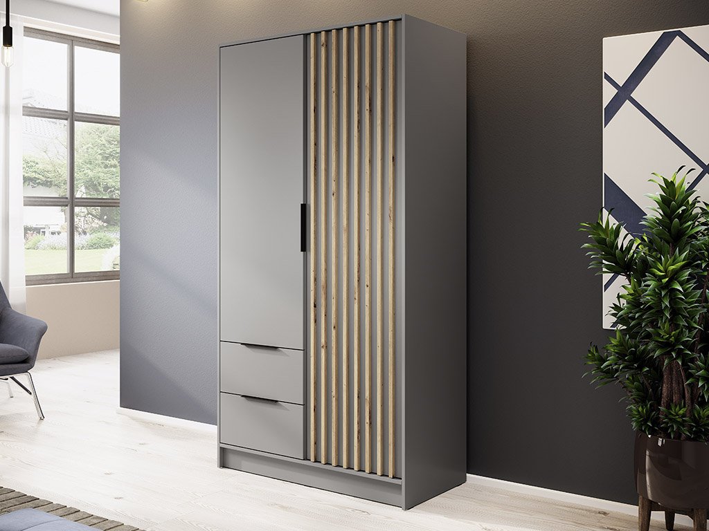 NELLY 2D ruhásszekrény - szürke / artisan tölgy