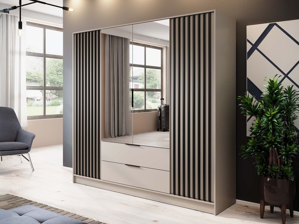 NELLY 4D tükrös gardróbszekrény 206x200x51 - kasmír / fekete