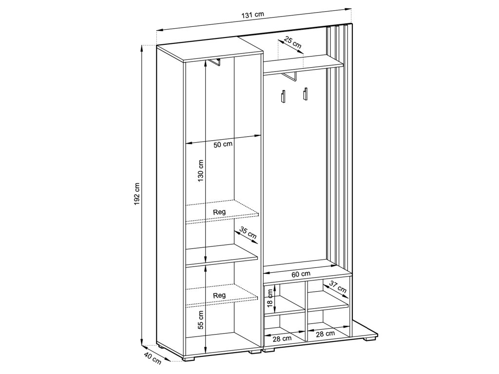 Az előszobafal univerzális - tehát jobbosan és balosan is összeszerelhető. Éppen aszerint, ahogyan szüksége van rá.