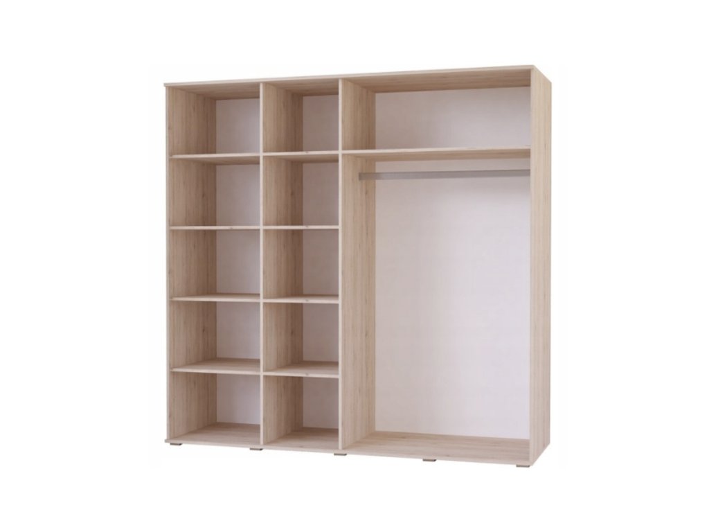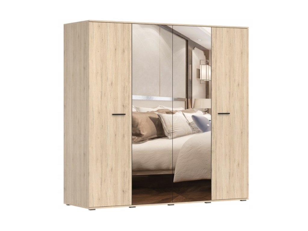 A Nesia ruhaszekrény négyajtós szekrény tükörrel két részre osztva. Az egyik részében 10 praktikus polc, a másik részében egy szélesebb polc és ruhaakasztó rúd található a ruhák felakasztására.