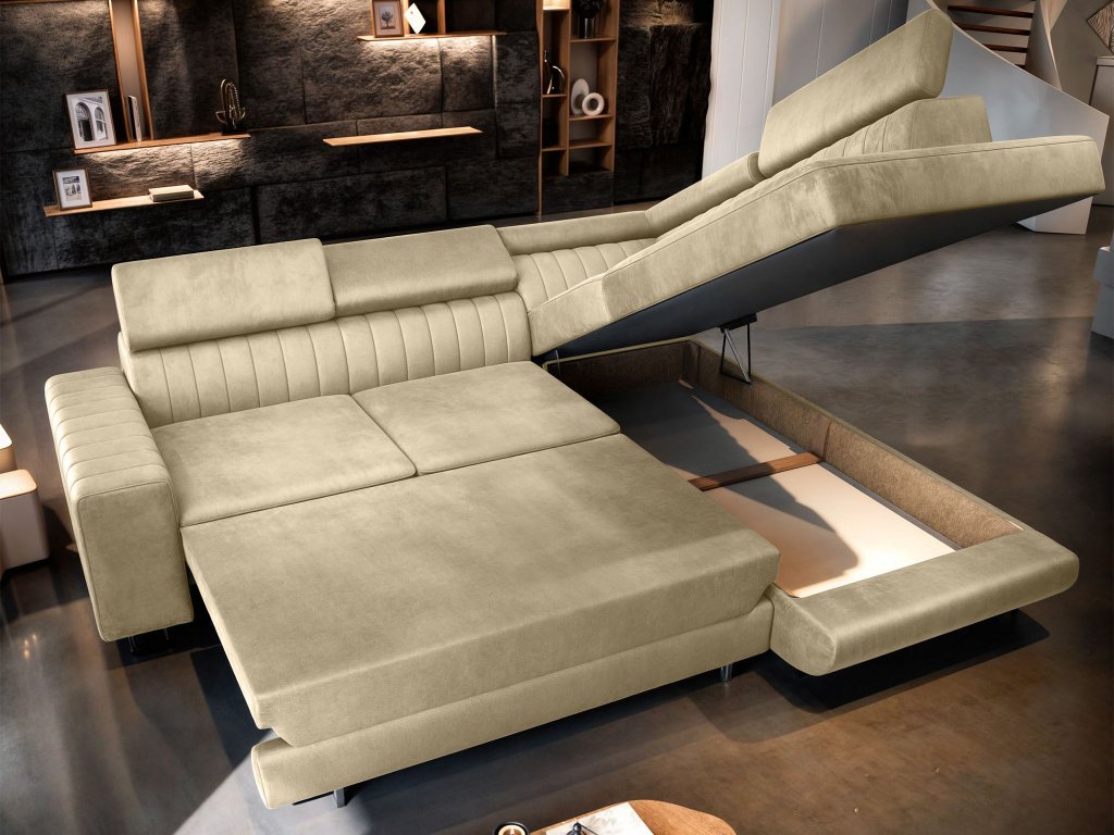 NOLA ágyneműtartós L alakú kihúzható sarok ülőgarnitúra - krémszín