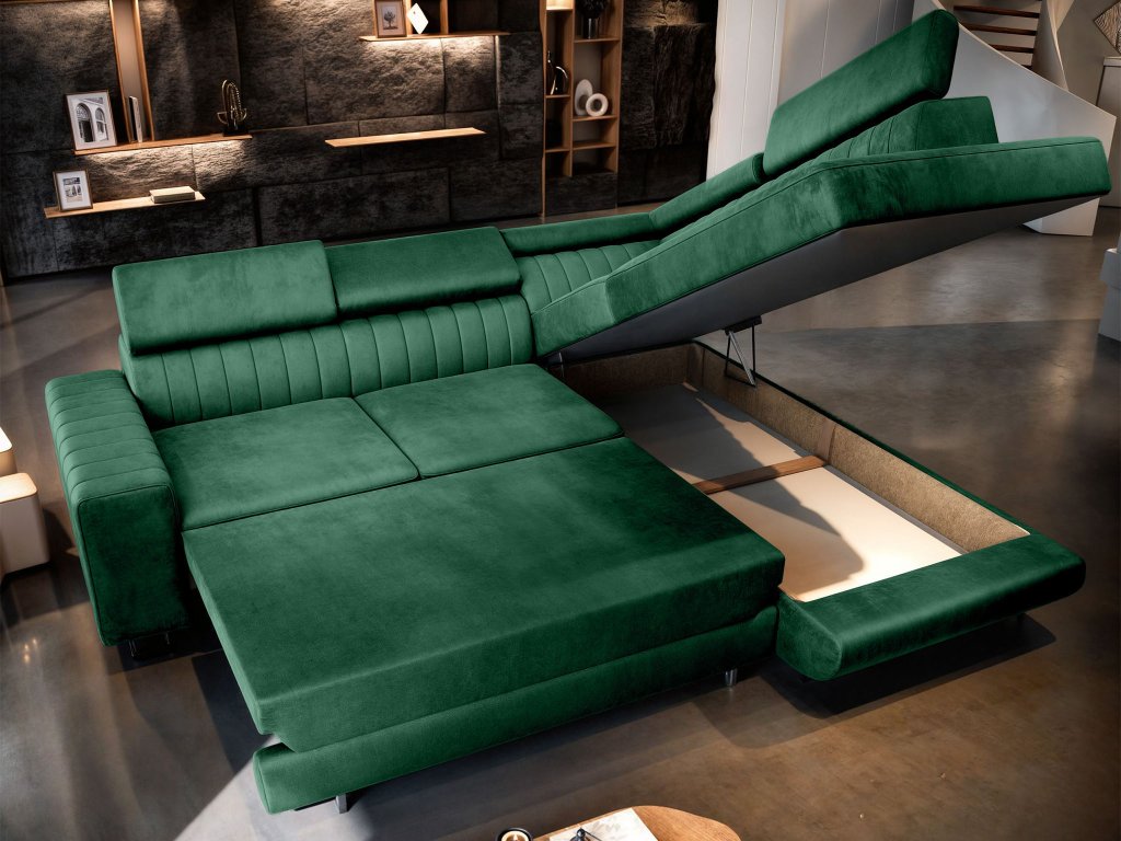NOLA ágyneműtartós L alakú kihúzható sarok ülőgarnitúra - zöld