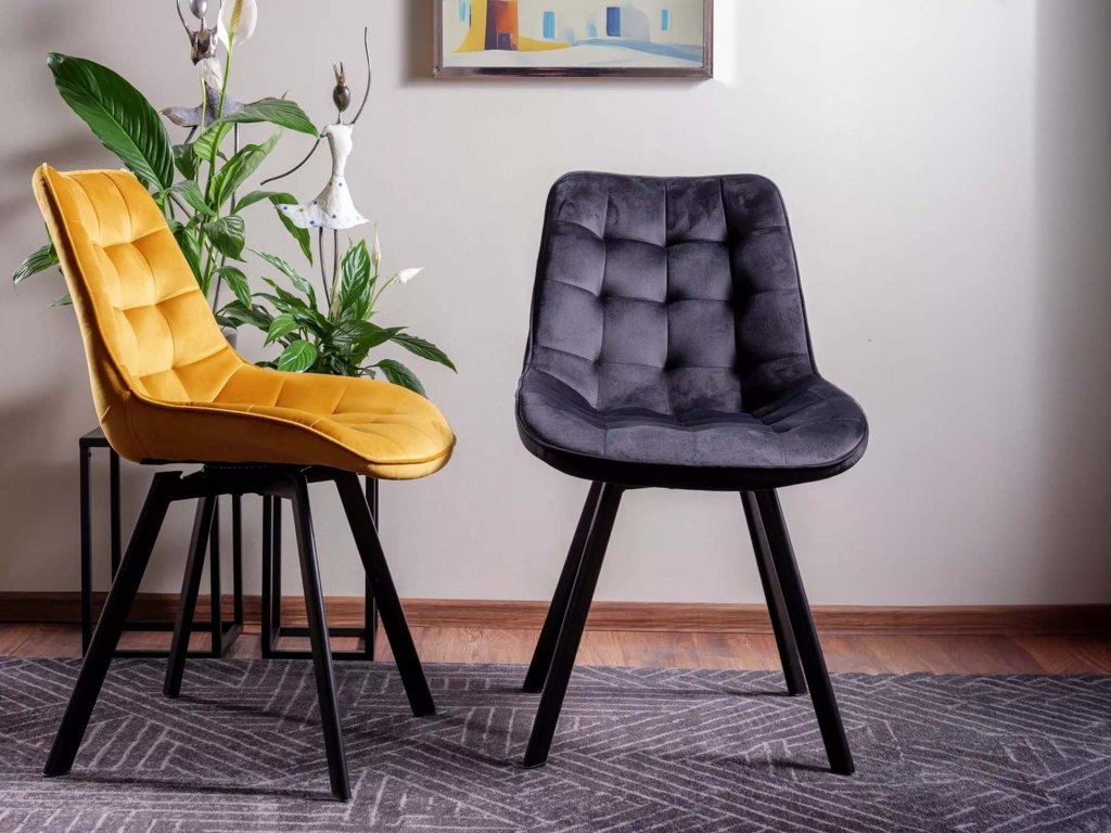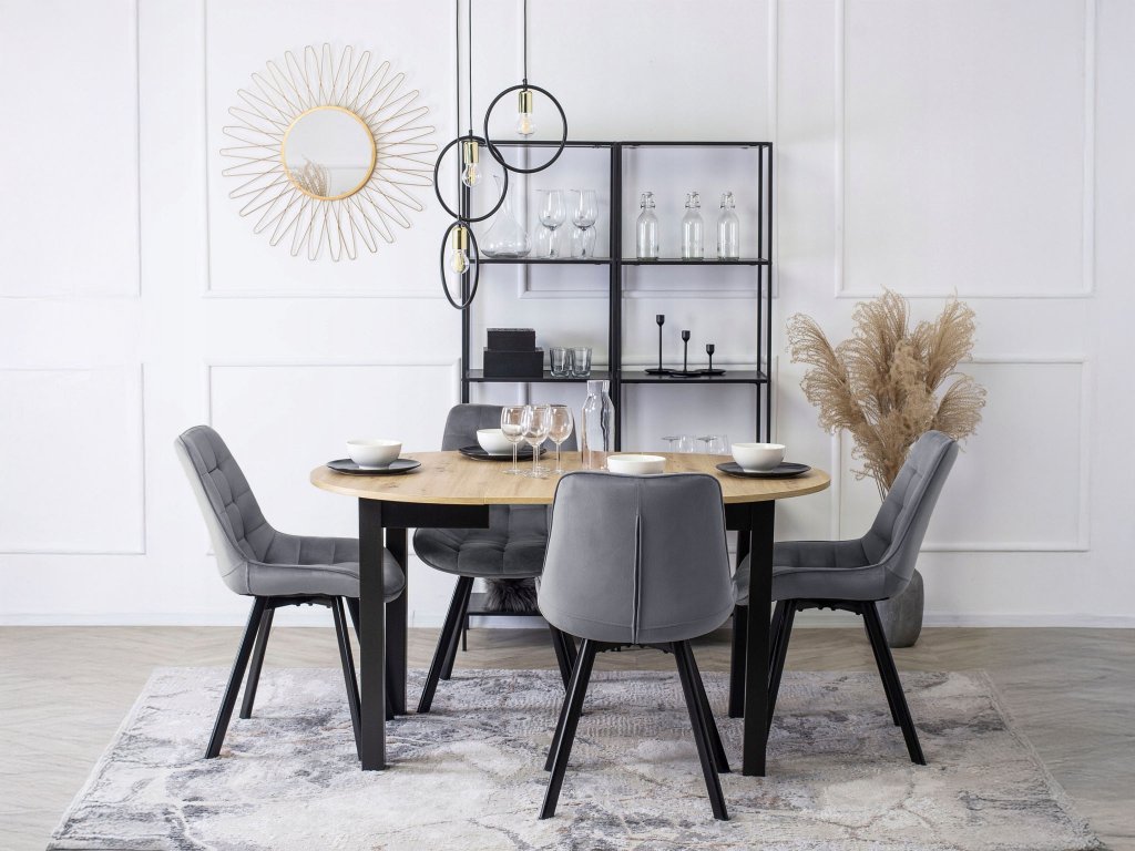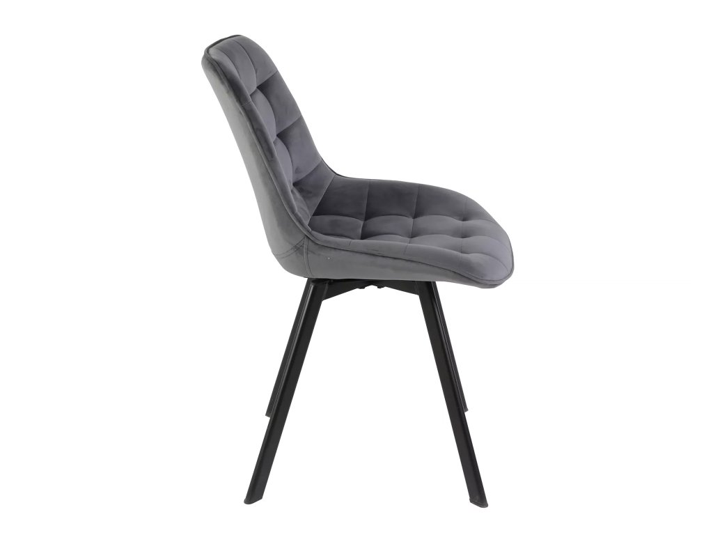 Fekete fém lábakkal rendelkező elegáns szürke színű NOTTI étkezőszék. Masszív megjelenésének hála igazán jó választás lehet egy modern étkezőbe vagy konyhába. A lágy steppeléssel rendelkező szürke velúr szövet kifinomult megjelenést kölcsönöz a széknek, amely már első pillantásra megragadja a figyelmet. A fém vázzal rendelkező étkezőszék stabil szerkezete hosszú élettartamot és megbízhatóságot biztosít, míg a puha kárpitozás kivételes kényelmet nyújt ülés közben. Legyen szó egy családi reggeliről, egy hosszú barátokkal eltöltött hétvégi vacsoráról vagy az asztal mellett munkával eltöltött időről – a Notti étkezőszék mindig gondoskodik majd a kényelemről. Kompakt méretének köszönhetően könnyen mozgatható, könnyű szerkezete pedig lehetővé teszi a problémamentes áthelyezést. A szék 180 fokban forgatható.