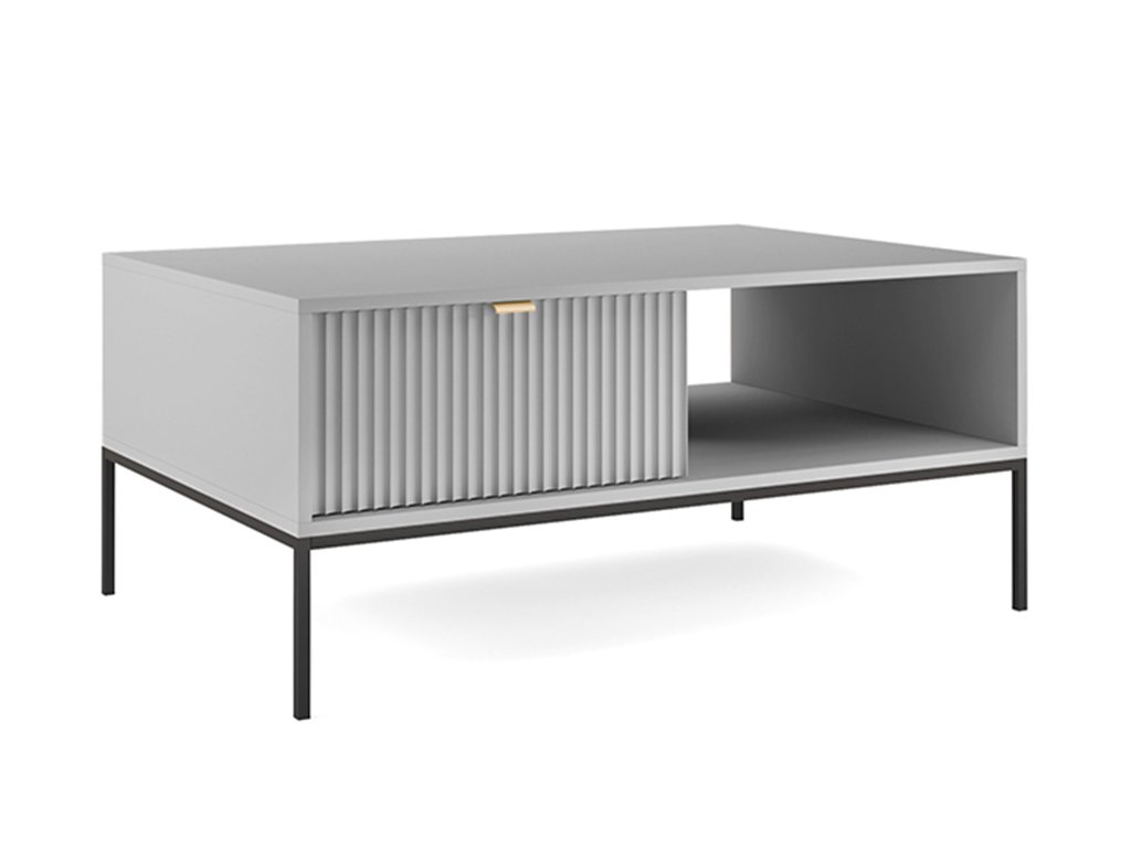 NOVA L104 dohányzóasztal, amely szürke színben készül és segít praktikusan és elegánsan berendezni a szobát. A praktikus tároló helynek köszönhetően tökéletes vendégek fogadásakor. Nyitott polccal és egy fiókkal is rendelkezik.