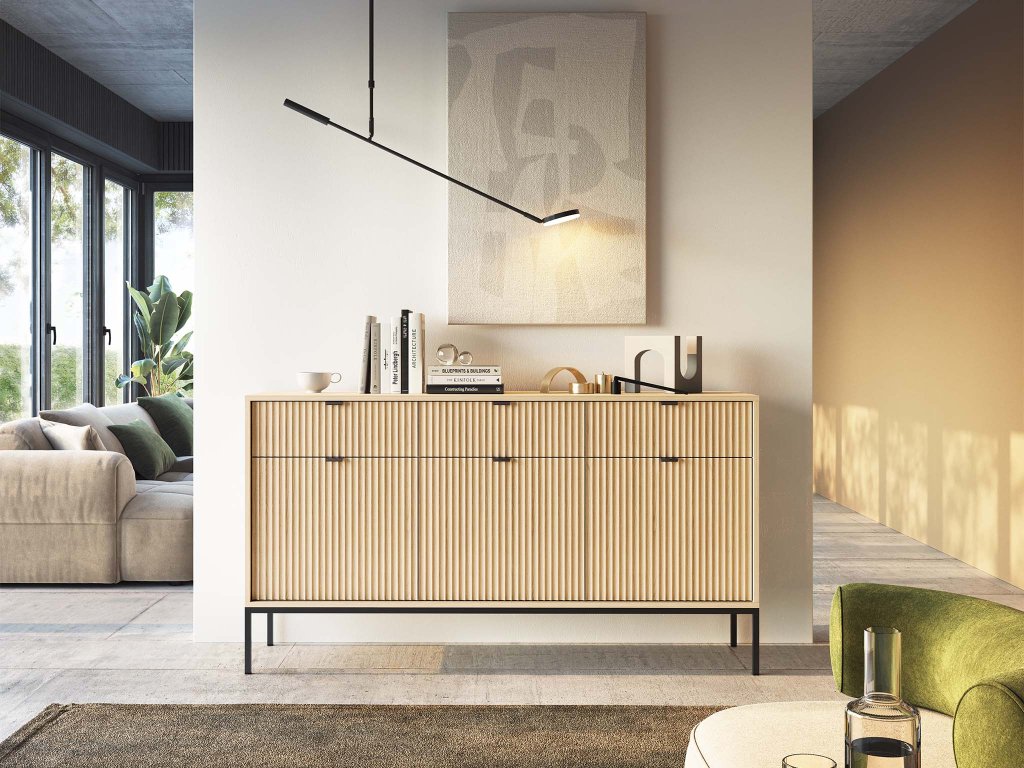 Széles Nova komód – természetes dizájn modern részletekkel