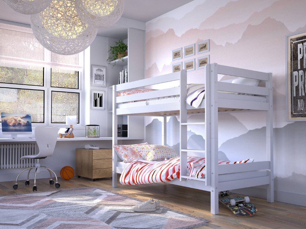 OLAF tömör fa emeletes ágy 90x190 - fehér