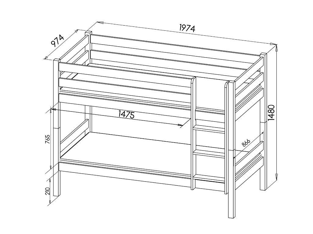 - Távolság az alsó és a felső fekhely között: 76,5 cm