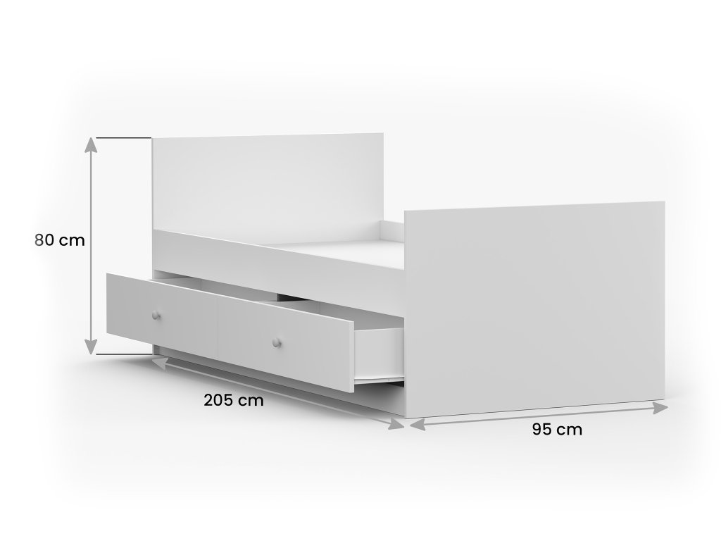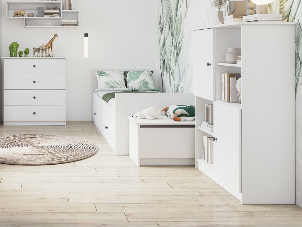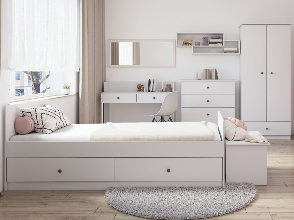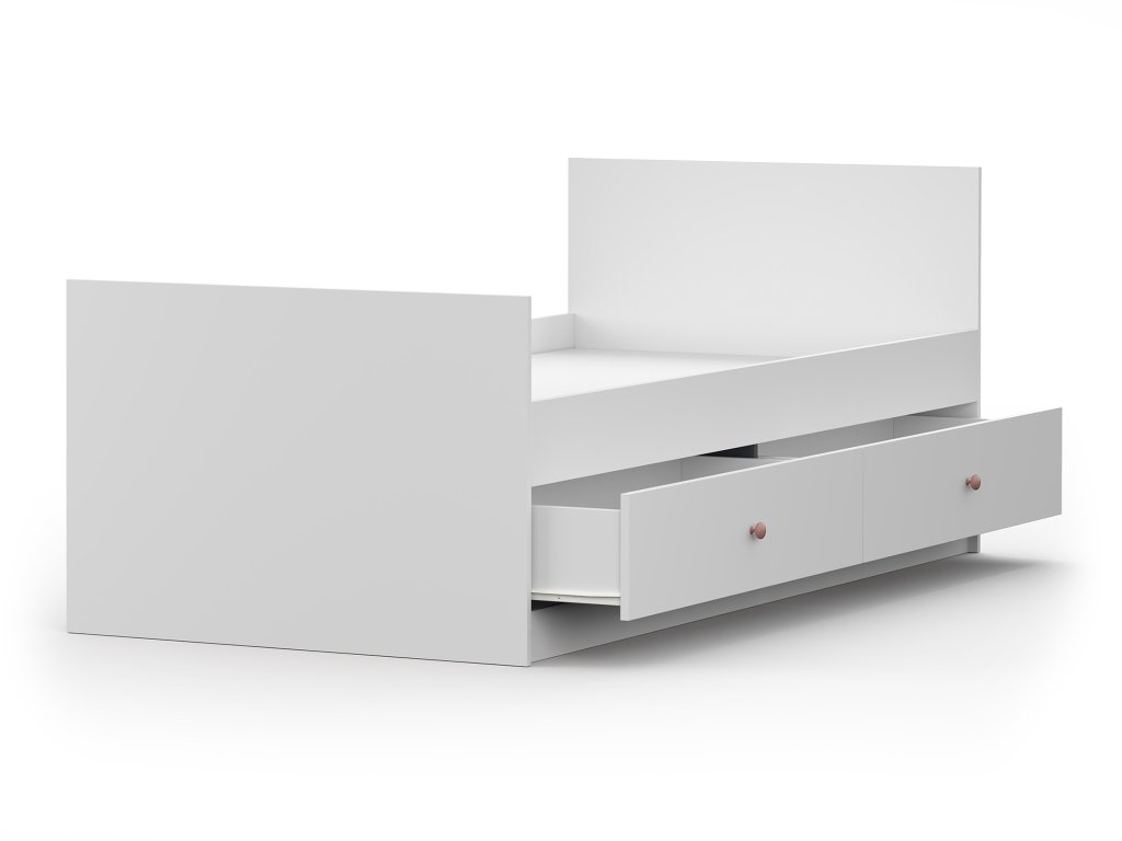 A gyönyörű fehér színben készült letisztult megjelenésű egyszemélyes OLAFI gyerekágy 90x200 cm két ágyneműtartóval is rendelkezik. Tökéletes választást jelent minden gyerekszobába vagy ifjúsági szobába. Nem csak egy kényelmes fekhelyet biztosít, de két praktikus ágyneműtartó fiókkal is rendelkezik. Ide elhelyezheti a gyerekek játékait, ágyneműit vagy a szezonális ruháit.