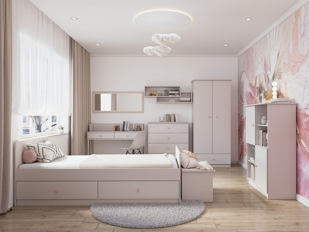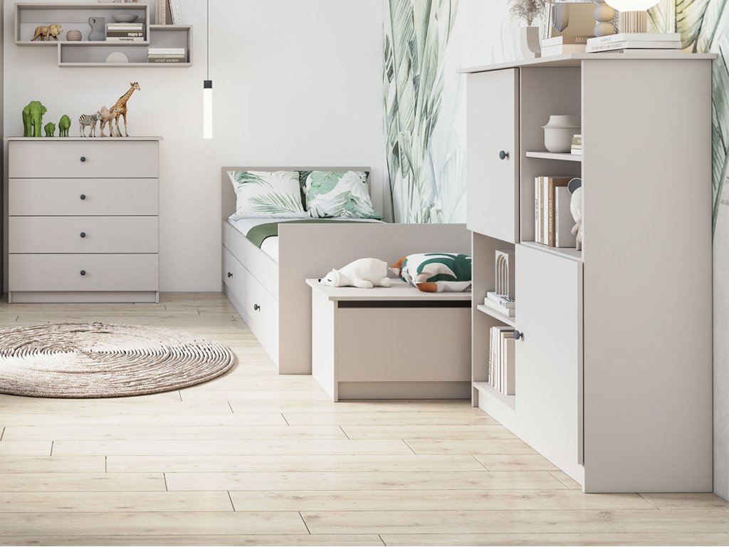 Az OLAFI gyerekszoba bútor garnitúra modern és praktikus megoldást kínál a gyerekszobába vagy az ifjúsági szobába. Tervezésekor az egyszerűség, a funkcionalitás és a letisztult megjelenés került előtérbe, így könnyedén illeszkedik bármilyen otthonba. A bútorok két színváltozatban érhetők el: fehér és kasmír kivitelben. A fogantyúk színét pedig saját maga választhatja ki, attól függően, hogy lányos vagy fiús gyerekszobába választja-e, lehet rózsaszín vagy antracit. A kollekció egyes elemei kiváló minőségű 16 mm vastag laminált bútorlapból készülnek, tartós ABS élzárással. Az OLAFI bútorcsalád nagy szabadságot ad az összeállításban, az egyes bútordarabok szabadon kombinálhatók, így könnyedén kialakíthatja a tökéletes gyermekszobát gyermeke számára.