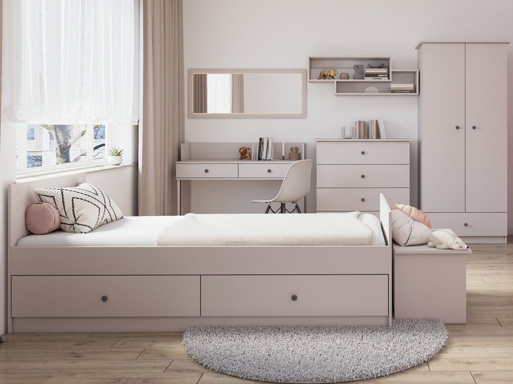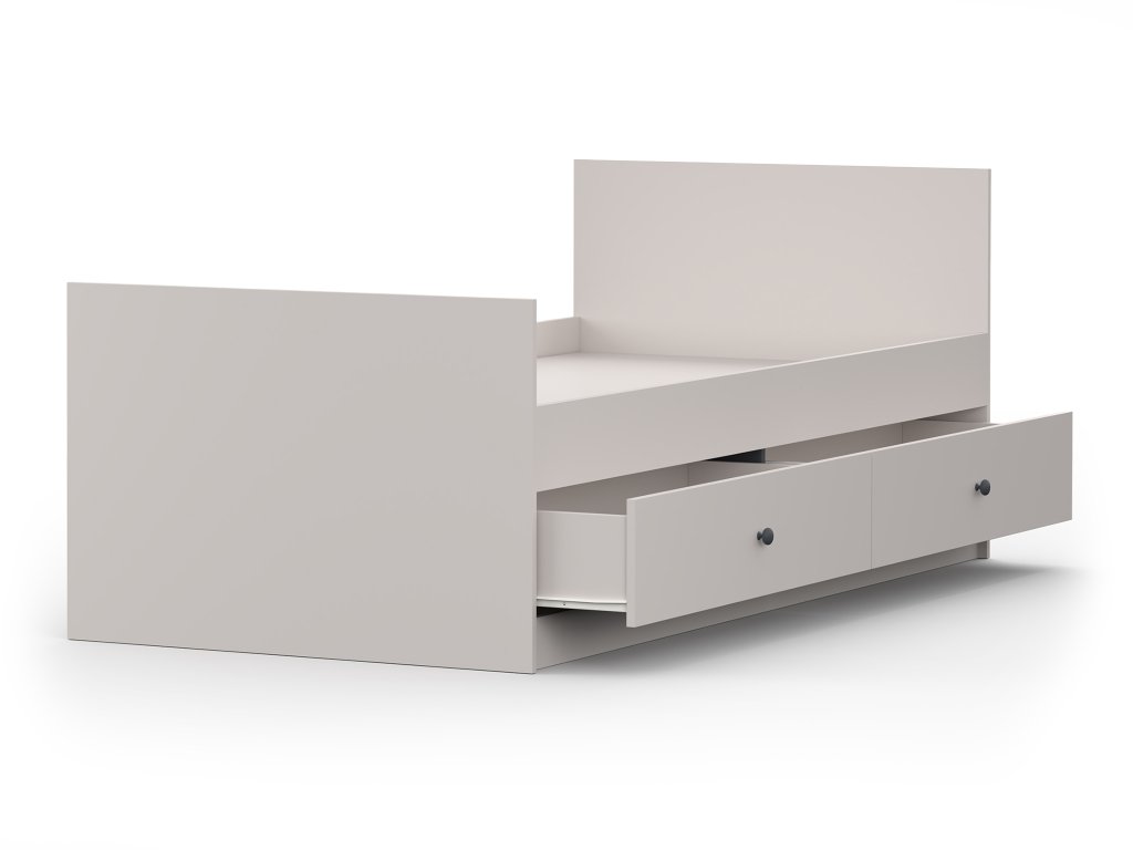 Az egyszemélyes OLAFI gyerekágy 90x200 cm két ágyneműtartóval is rendelkezik. Tökéletes választást jelent minden gyerekszobába vagy ifjúsági szobába. Nem csak egy kényelmes fekhelyet biztosít, de két praktikus ágyneműtartó fiókkal is rendelkezik. Ide elhelyezheti a gyerekek játékait, ágyneműit vagy a szezonális ruháit.