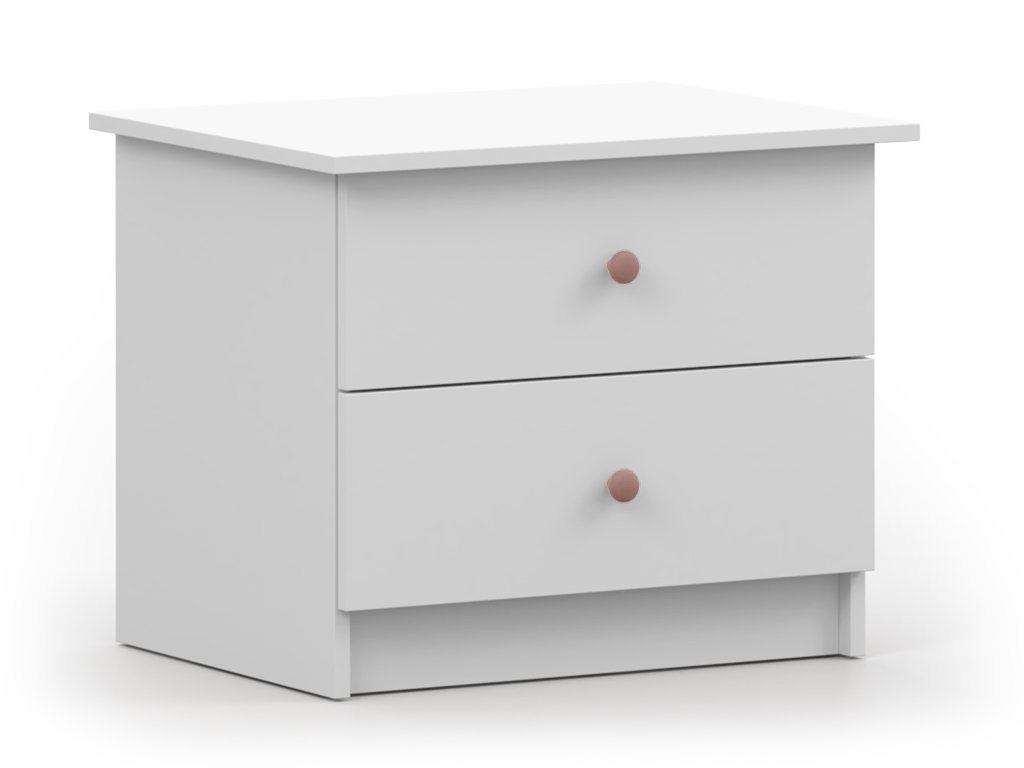 Az éjjeliszekrény fogantyúk nélkül kapható. Ehhez a termékhez 2 darab fogantyút szükséges vásárolni: rózsaszín vagy antracit színben.