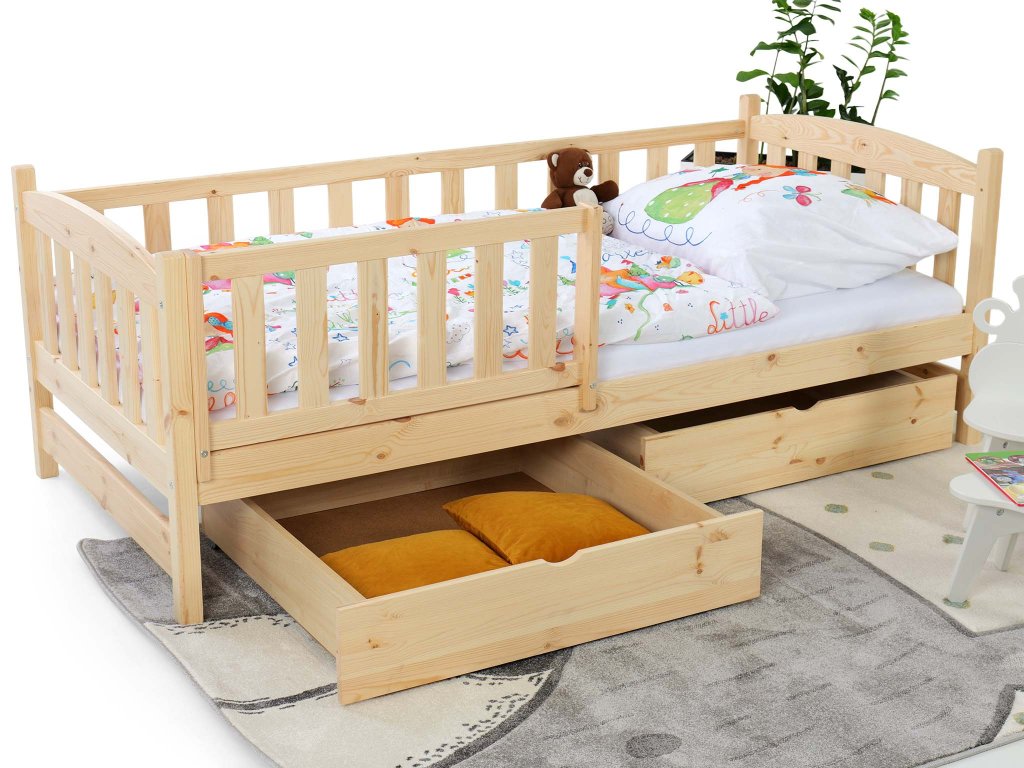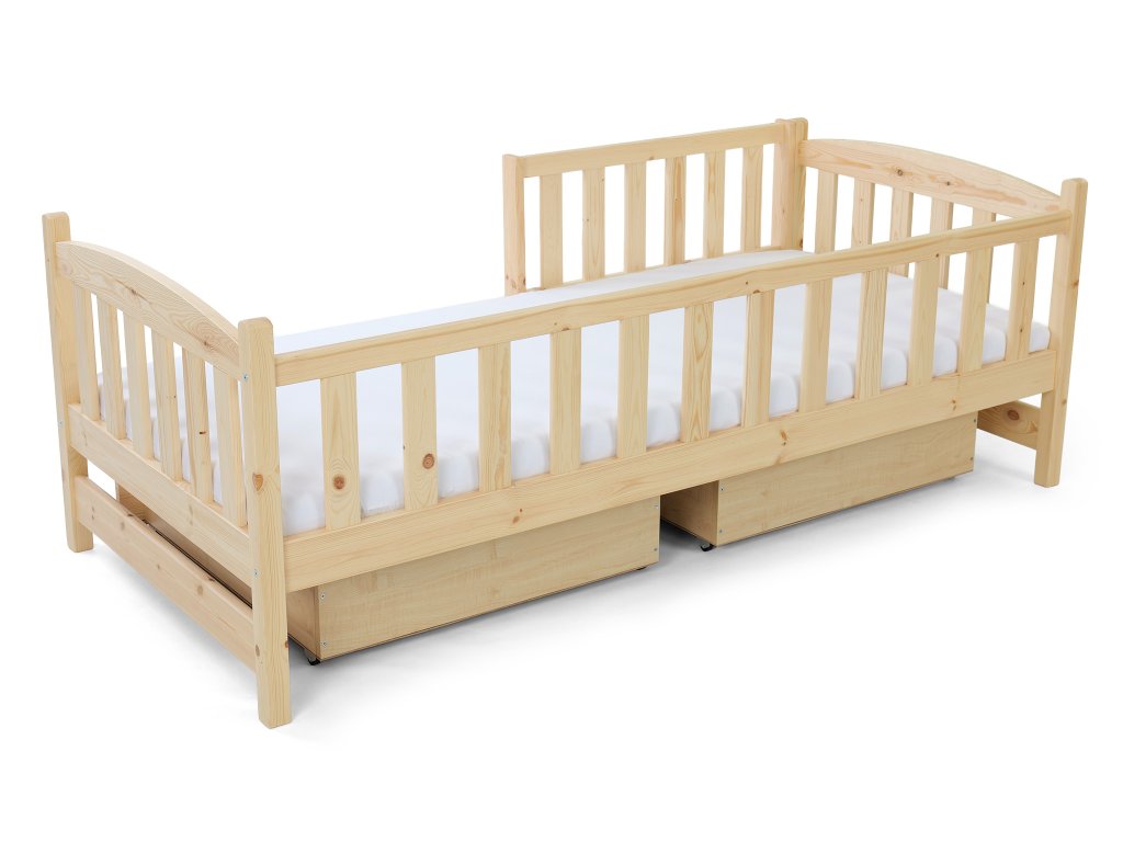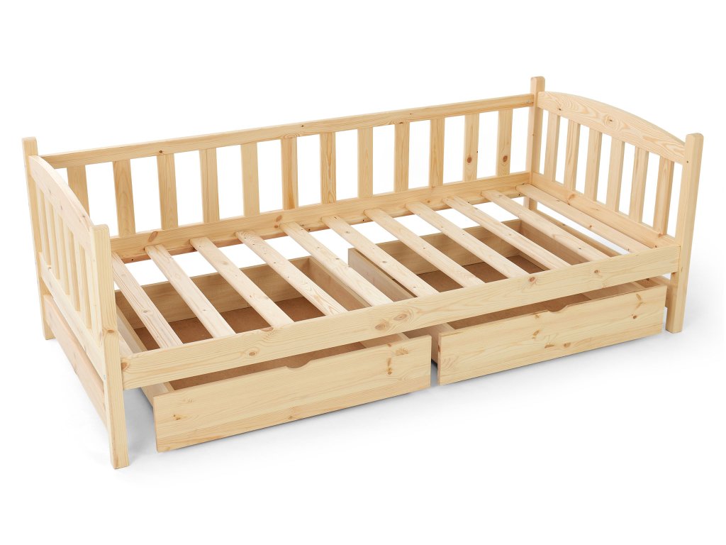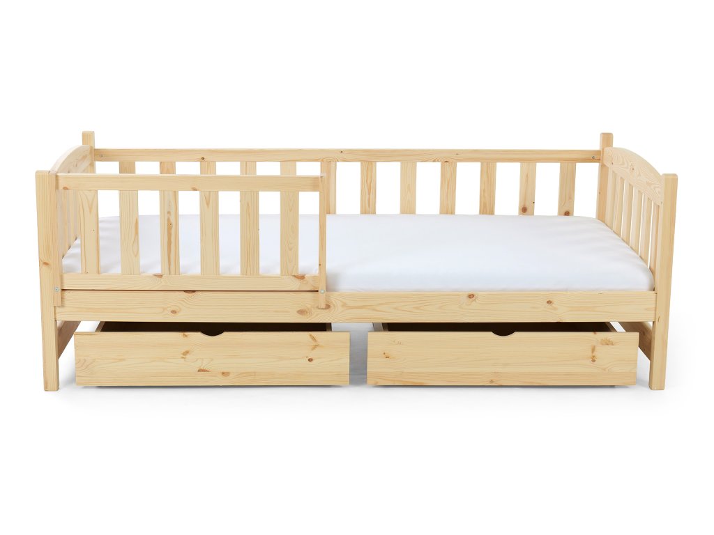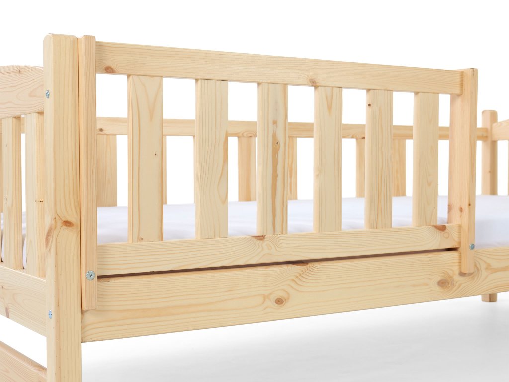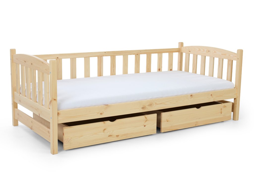 Az OLGA 2 ágy minőségi tömör boroviból készült. Az ágy natúr kivitelben kapható, természetre nem ártalmas ökológiai lakkal kezelve. A felhasznált anyagoknak köszönhetően az ágy magas minőségű és nagyon stabil. Az ágy ágyráccsal és tároló fiókkal együtt kapható.Az ágy 2 ágyneműtartó fiókot tartalmaz, amelyek műanyag kerekeken mozognak, hogy ne okozzanak sérülést a padlón és nincsenek az ágyhoz rögzítve. Az ágyhoz tartozik leesésgátló is, amely biztosítja gyermeke biztonságát. A leesésgátló leszerelhető, amennyiben gyermekének már nincs rá szüksége, könnyedén leveheti. A leesésgátló az ágy mindkét oldalára felszerelhető.